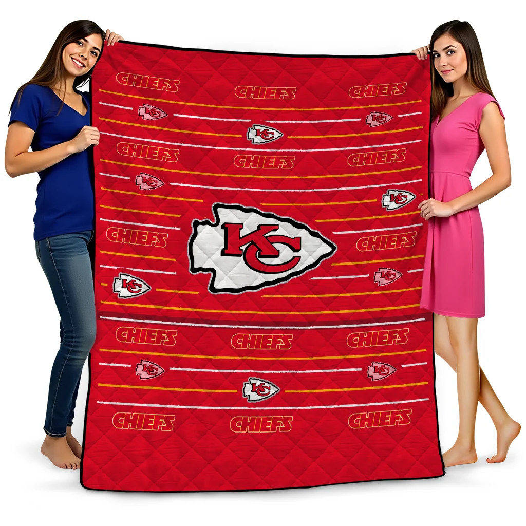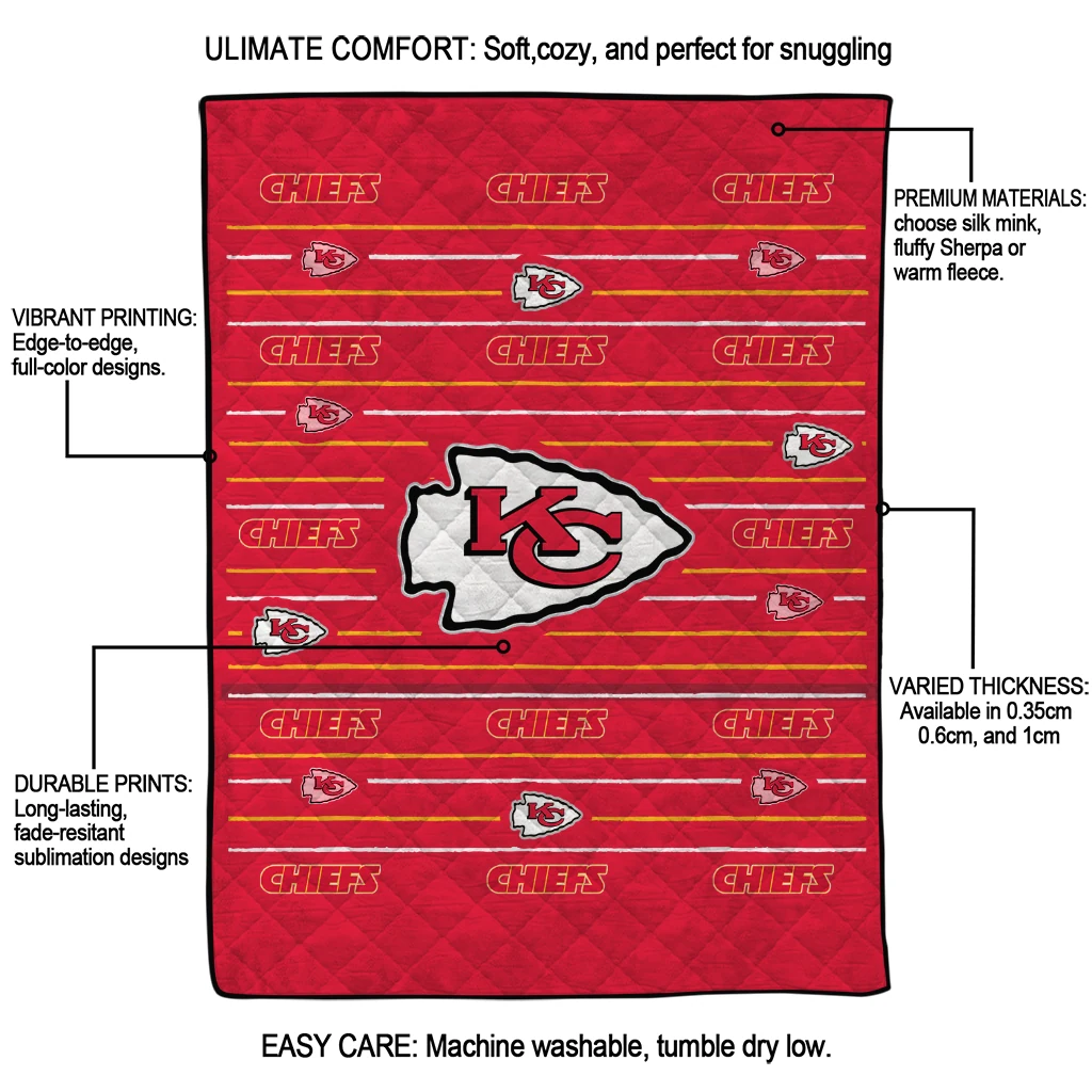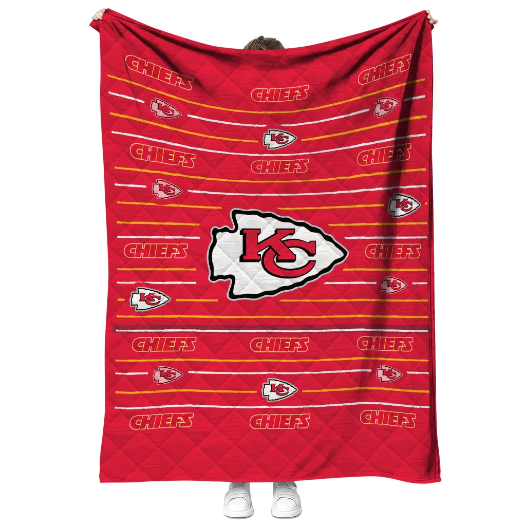 Kansas City Chiefs Handdrawn Stripes Red Quilt Blanket