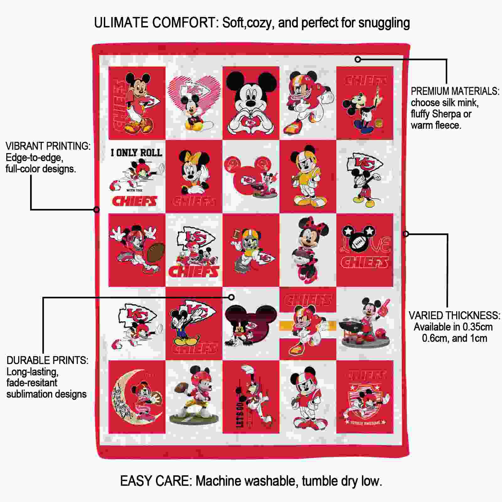 Kansas City Chiefs Mickey Minnie Red White Blanket