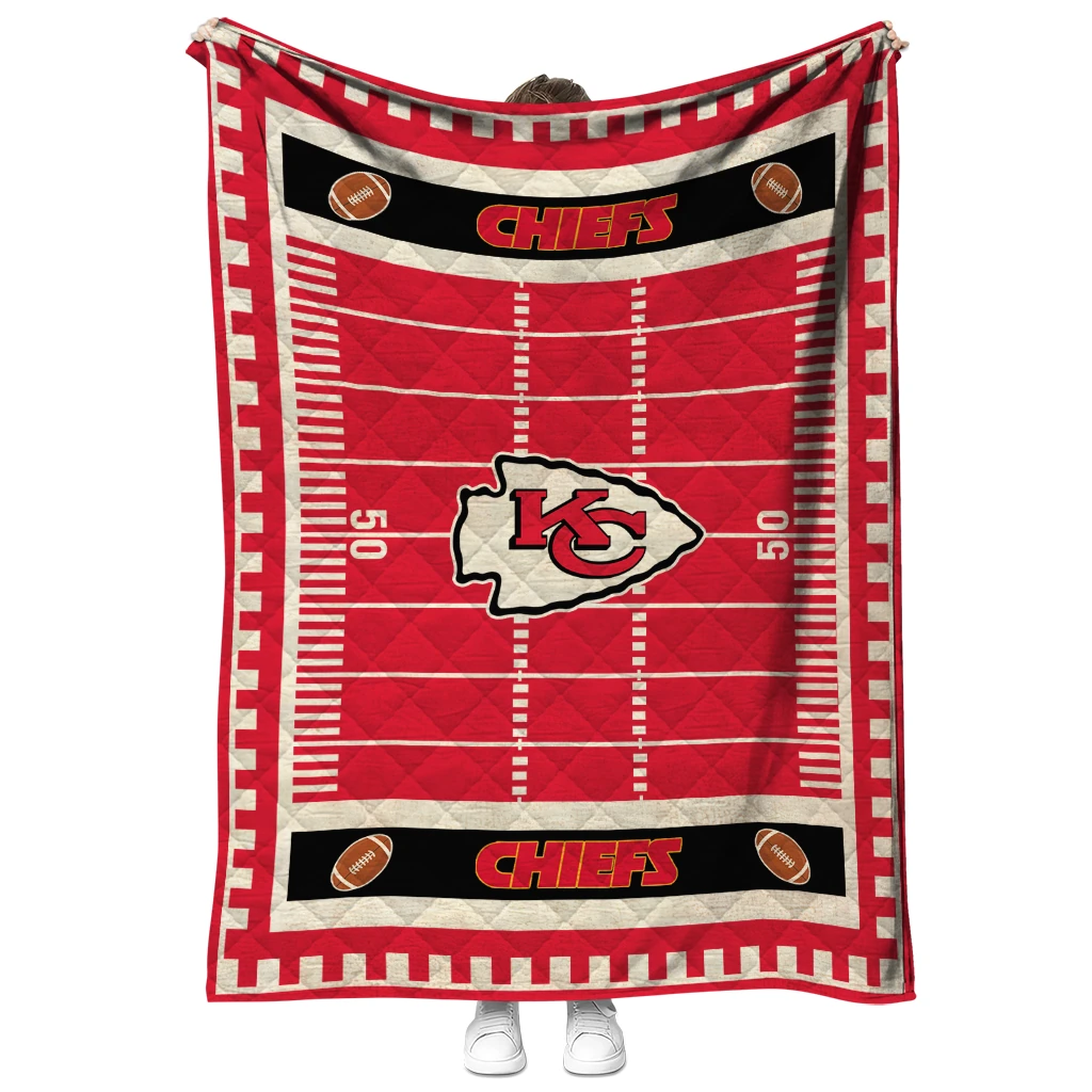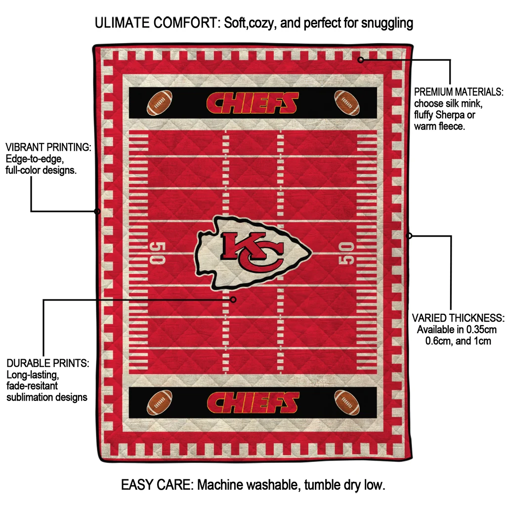 Wrap yourself in warmth and pride with the Kansas City Chiefs Mickey Player Red Quilt Blanket from the Kansas City Chiefs Blankets collection at Yes That Blanket. Made from 100% premium quilting-weight polyester blended with a touch of microfiber, this quilt offers a smooth, soft finish you’ll love. Choose between two quilting styles—Stipple or Diagonal—and enjoy the comfort of a cotton-filled layer inside that adds extra coziness for every season. The border is available in classic black or white, giving your design a clean, timeless edge.