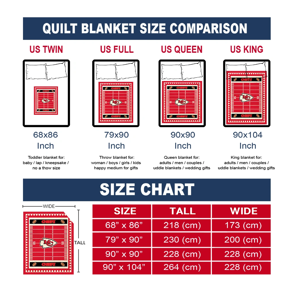 The Kansas City Chiefs Mickey Player Red Quilt Blanket is more than a blanket—it’s everyday comfort, thoughtfully made. Crafted from premium quilting fabric with a soft microfiber touch, it offers a smooth hand-feel and lasting coziness. Layered quilting with a cotton-filled core provides adaptable warmth across seasons while maintaining a clean, tailored look on your bed or sofa.