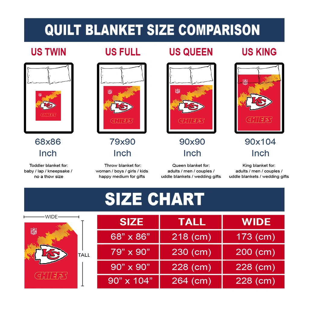 Wrap yourself in warmth and pride with the Kansas City Chiefs Shield Badge Red Quilt Blanket from the Kansas City Chiefs Blankets collection at Yes That Blanket. Made from 100% premium quilting-weight polyester blended with a touch of microfiber, this quilt offers a smooth, soft finish you’ll love. Choose between two quilting styles—Stipple or Diagonal—and enjoy the comfort of a cotton-filled layer inside that adds extra coziness for every season. The border is available in classic black or white, giving your design a clean, timeless edge.