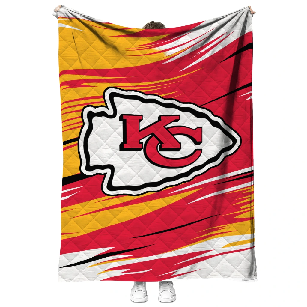 Wrap yourself in warmth and pride with the Kansas City Chiefs Wild Lines Red White Quilt Blanket from the Kansas City Chiefs Blankets collection at Yes That Blanket. Made from 100% premium quilting-weight polyester blended with a touch of microfiber, this quilt offers a smooth, soft finish you’ll love. Choose between two quilting styles—Stipple or Diagonal—and enjoy the comfort of a cotton-filled layer inside that adds extra coziness for every season. The border is available in classic black or white, giving your design a clean, timeless edge.