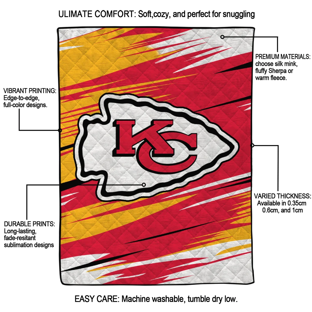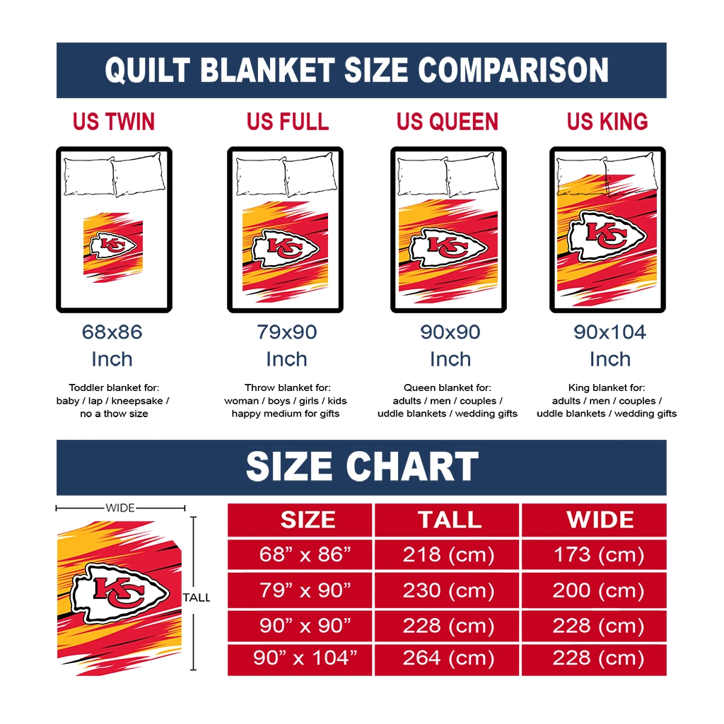 The Kansas City Chiefs Wild Lines Red White Quilt Blanket is more than a blanket—it’s everyday comfort, thoughtfully made. Crafted from premium quilting fabric with a soft microfiber touch, it offers a smooth hand-feel and lasting coziness. Layered quilting with a cotton-filled core provides adaptable warmth across seasons while maintaining a clean, tailored look on your bed or sofa.