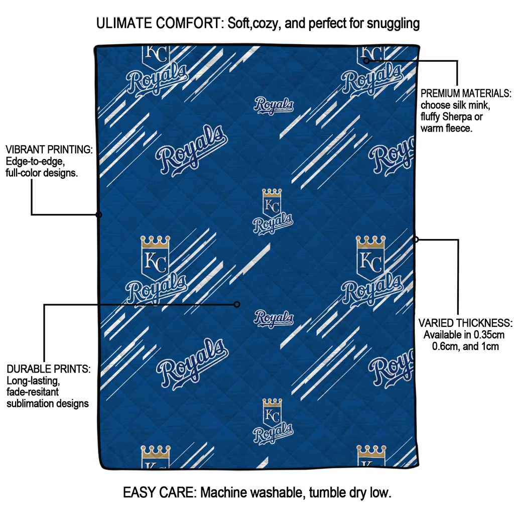 Wrap yourself in warmth and pride with the Kansas City Royals Sketch Lines Royal Blue Quilt Blanket from the Kansas City Royals Blankets collection at Yes That Blanket. Made from 100% premium quilting-weight polyester blended with a touch of microfiber, this quilt offers a smooth, soft finish you’ll love. Choose between two quilting styles—Stipple or Diagonal—and enjoy the comfort of a cotton-filled layer inside that adds extra coziness for every season. The border is available in classic black or white, giving your design a clean, timeless edge.