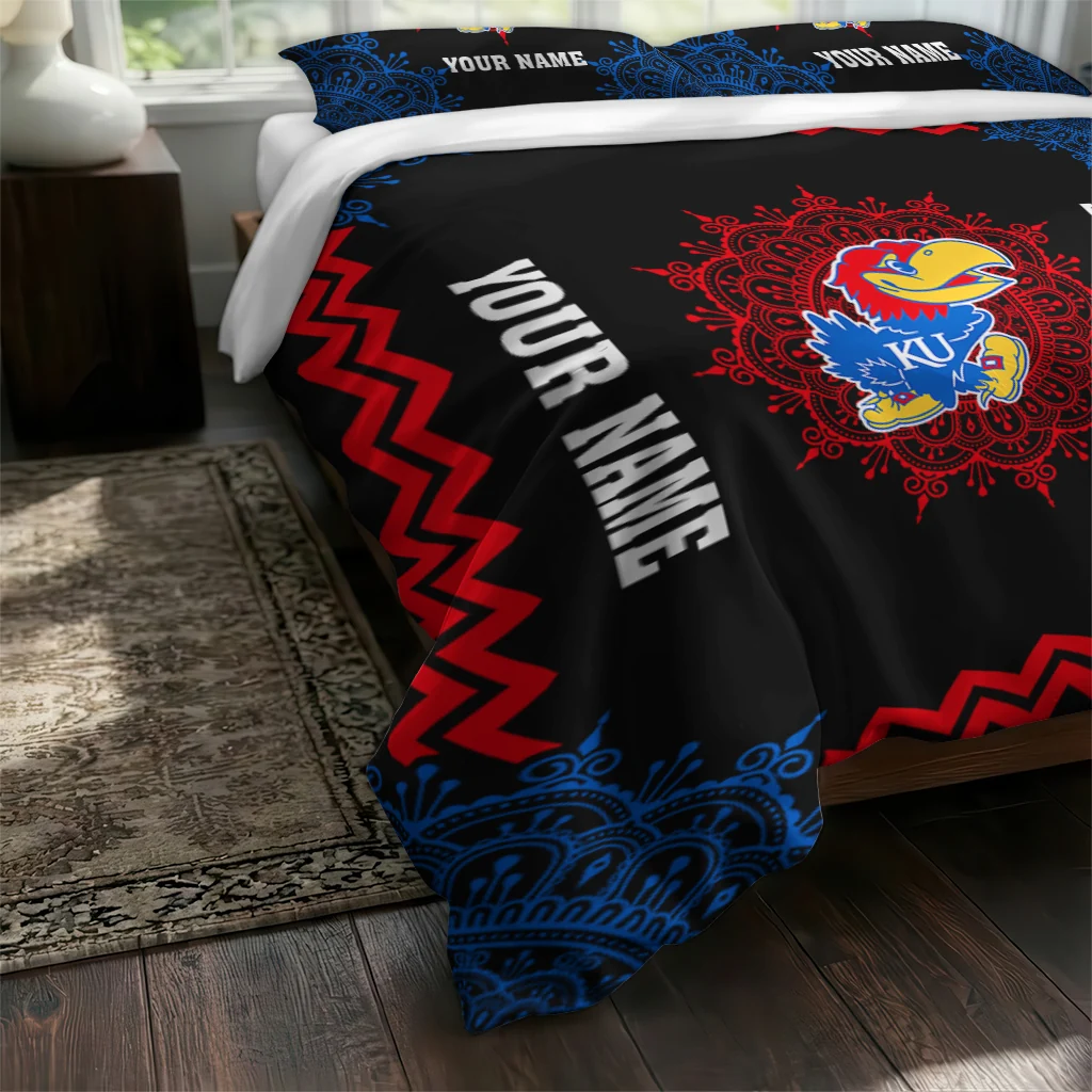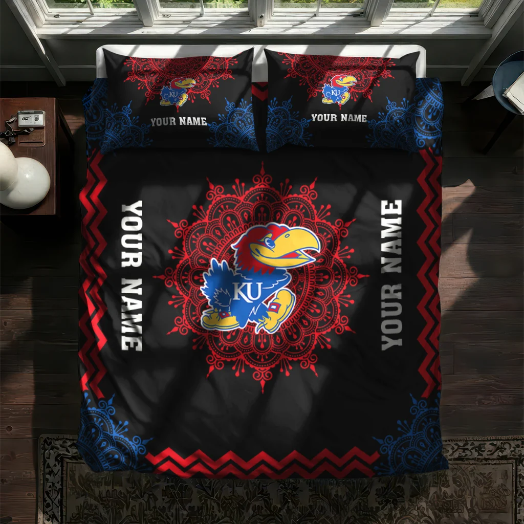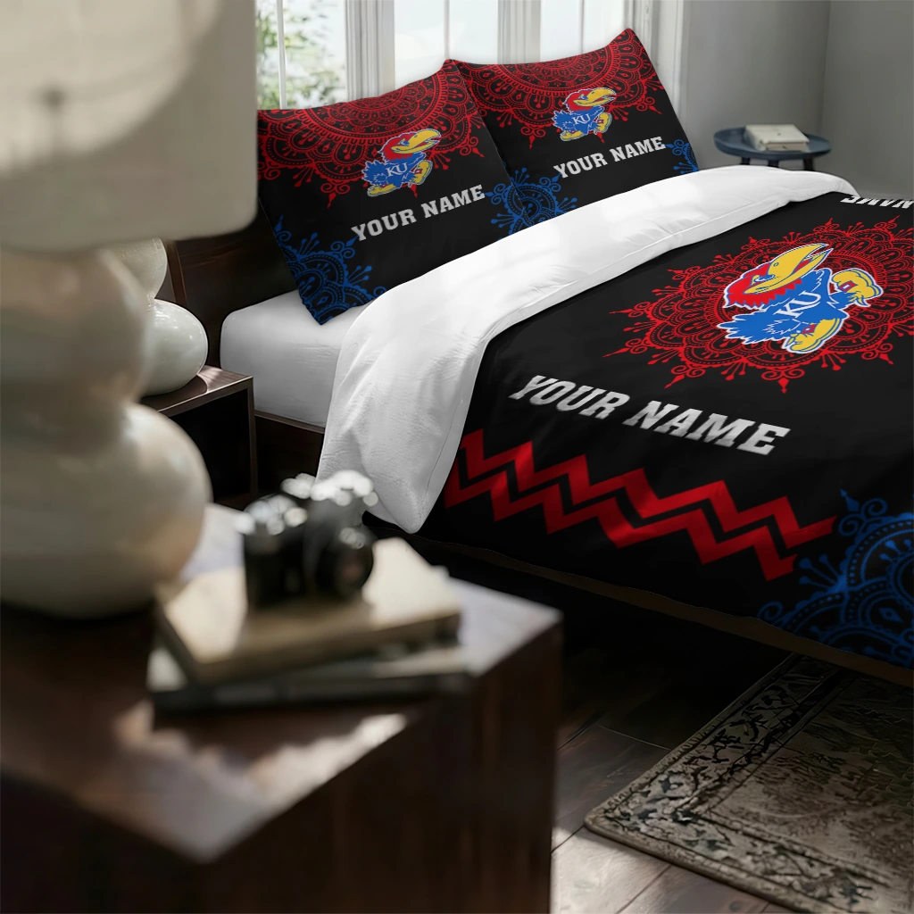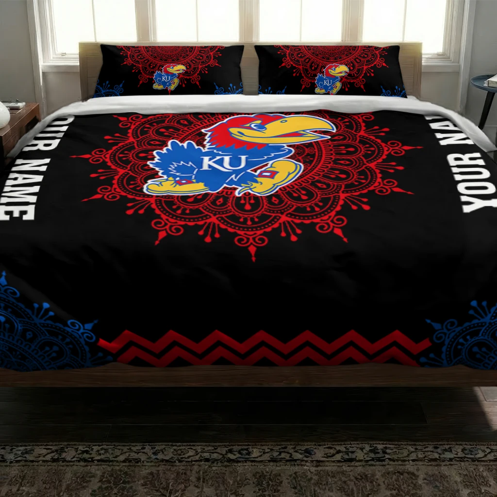 Kansas Jayhawks Bedding Set – Customized Mandala Lacework Black Red
