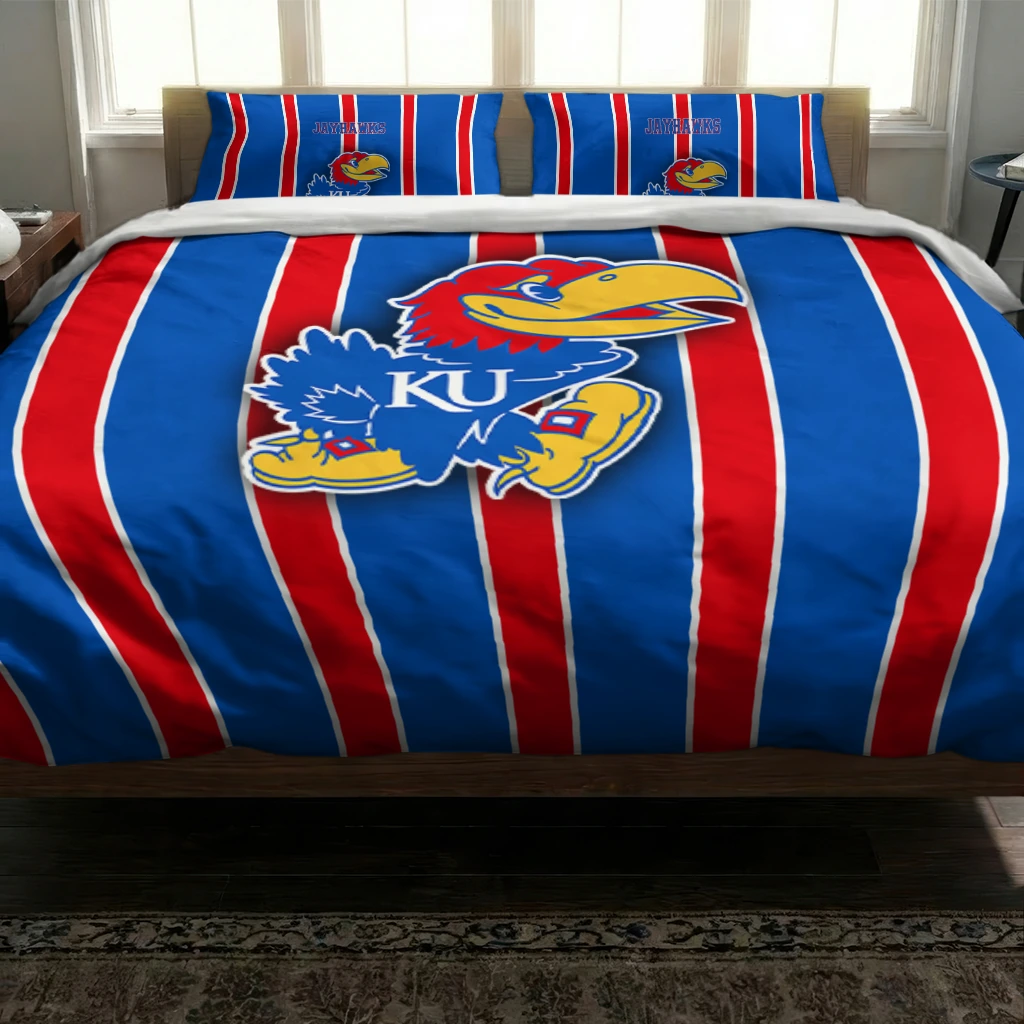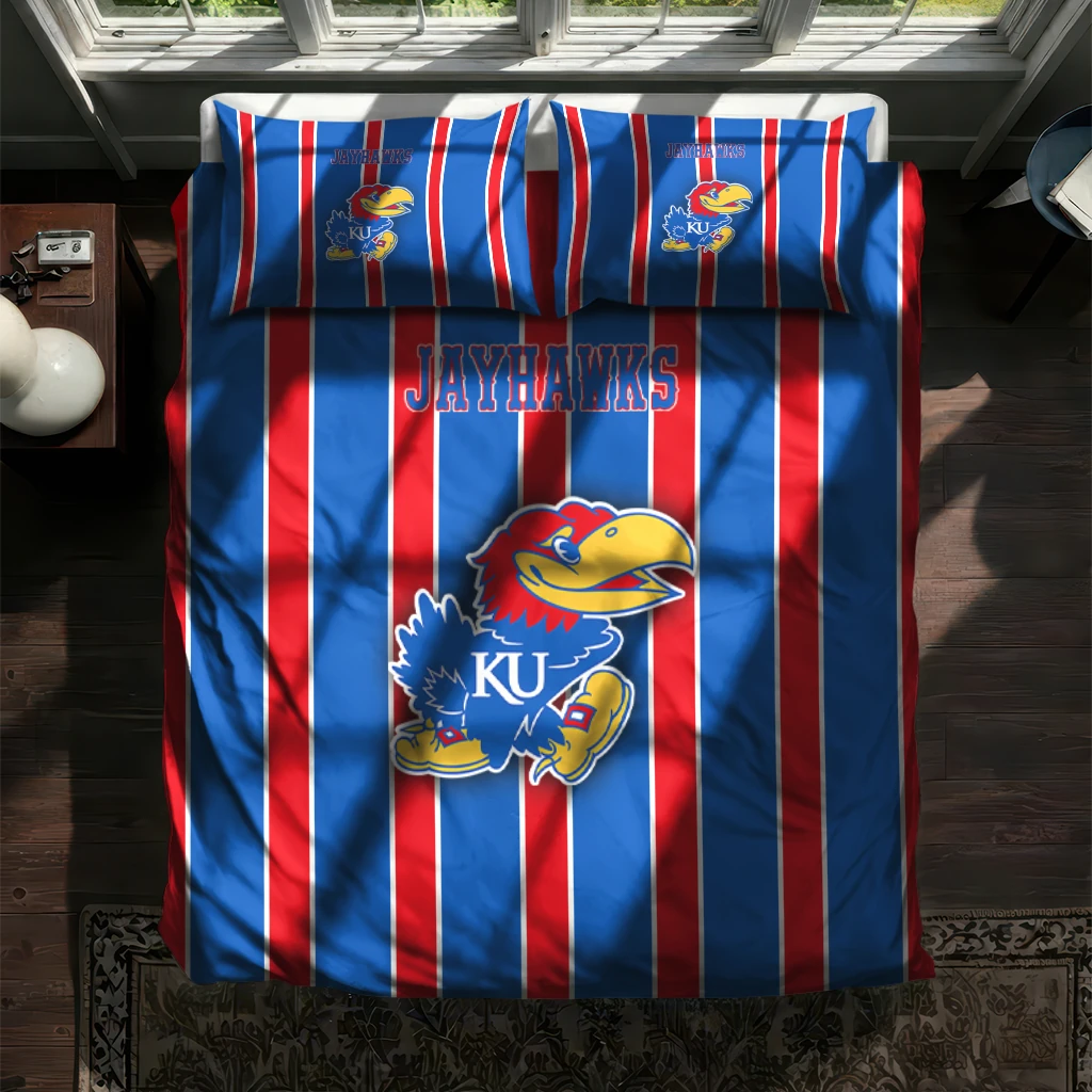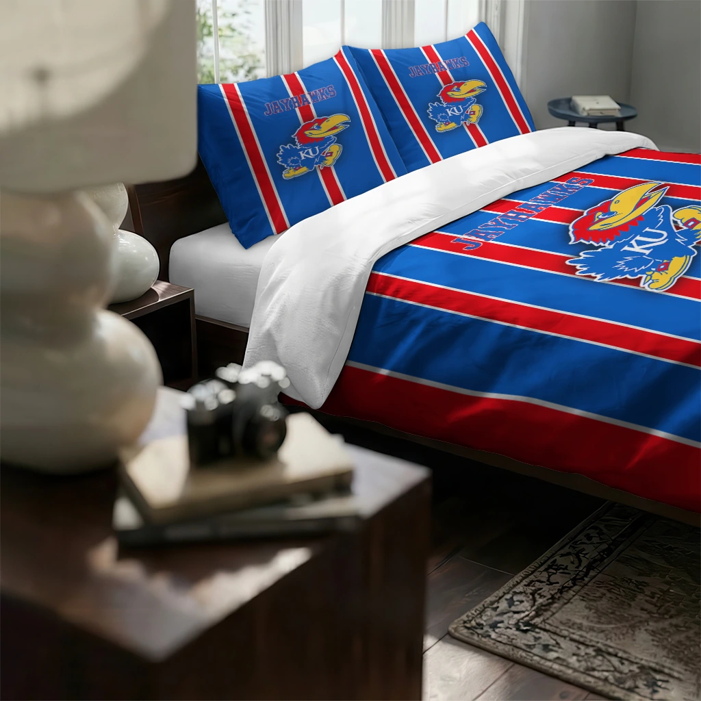 The Kansas Jayhawks Bedding Set – Stripe Style Blue Red makes your room feel complete, warm, and overflowing with team pride. Designed for true fans, this bedding set from the Kansas Jayhawks Bedding Sets collection at Yes That Blanket turns your sanctuary into a cozy retreat where sport style meets ultimate relaxation. Experience the perfect blend of comfort and passion every night with a finish so soft, you’ll never want to leave.