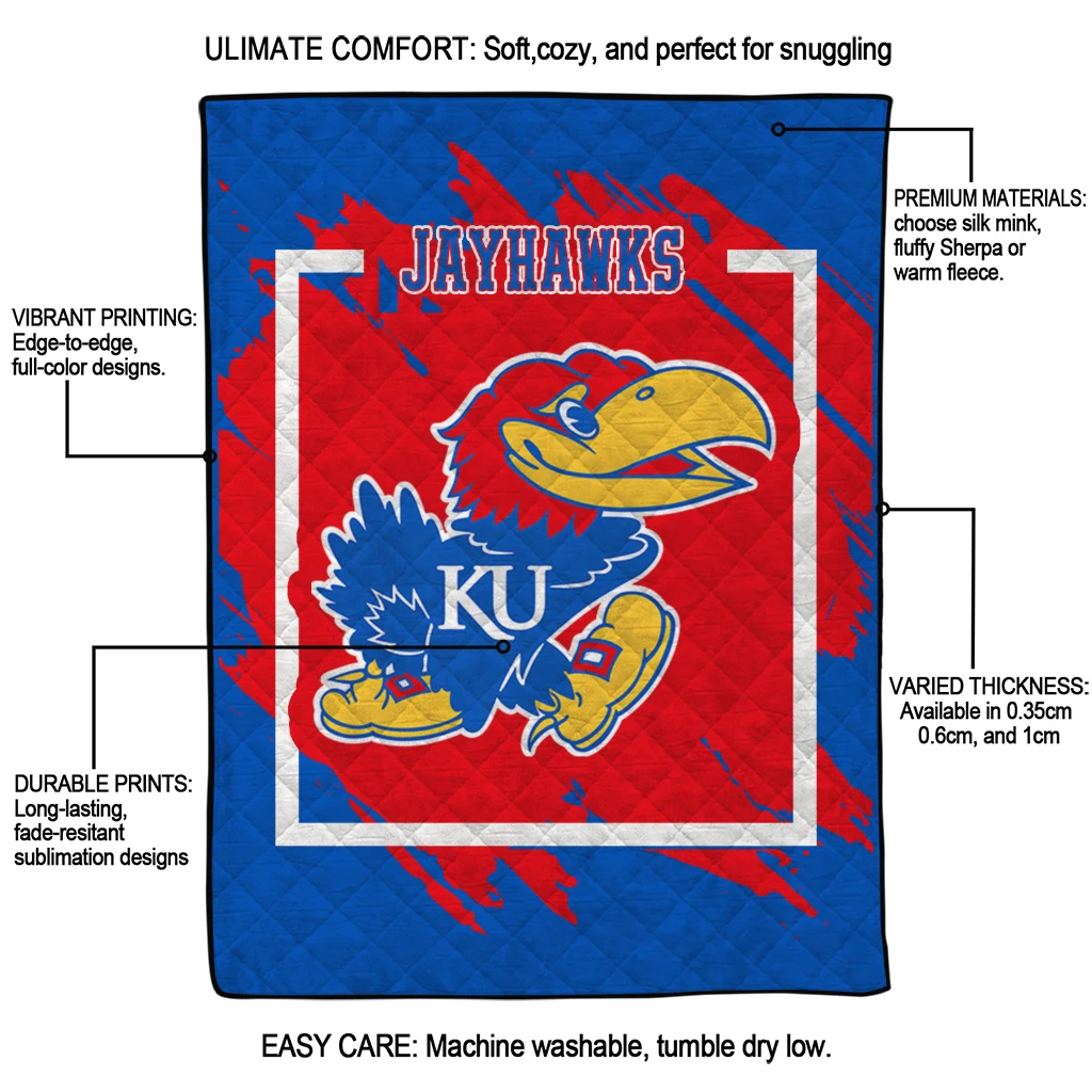 Wrap yourself in warmth and pride with the Kansas Jayhawks Block Border Blue Quilt Blanket from the Kansas Jayhawks Blankets collection at Yes That Blanket. Made from 100% premium quilting-weight polyester blended with a touch of microfiber, this quilt offers a smooth, soft finish you’ll love. Choose between two quilting styles—Stipple or Diagonal—and enjoy the comfort of a cotton-filled layer inside that adds extra coziness for every season. The border is available in classic black or white, giving your design a clean, timeless edge.