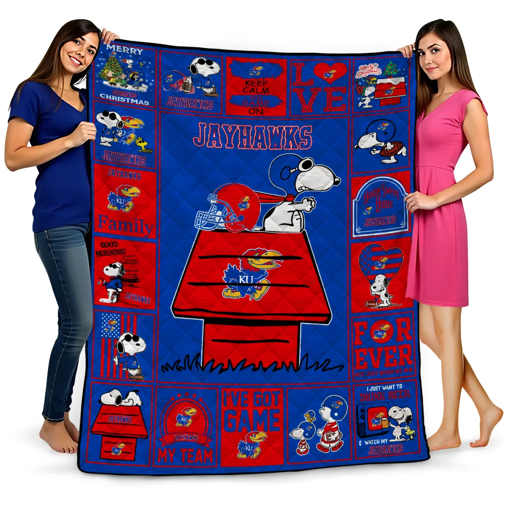 The Kansas Jayhawks Snoopy Love Blue Quilt Blanket is more than a blanket—it’s everyday comfort, thoughtfully made. Crafted from premium quilting fabric with a soft microfiber touch, it offers a smooth hand-feel and lasting coziness. Layered quilting with a cotton-filled core provides adaptable warmth across seasons while maintaining a clean, tailored look on your bed or sofa.