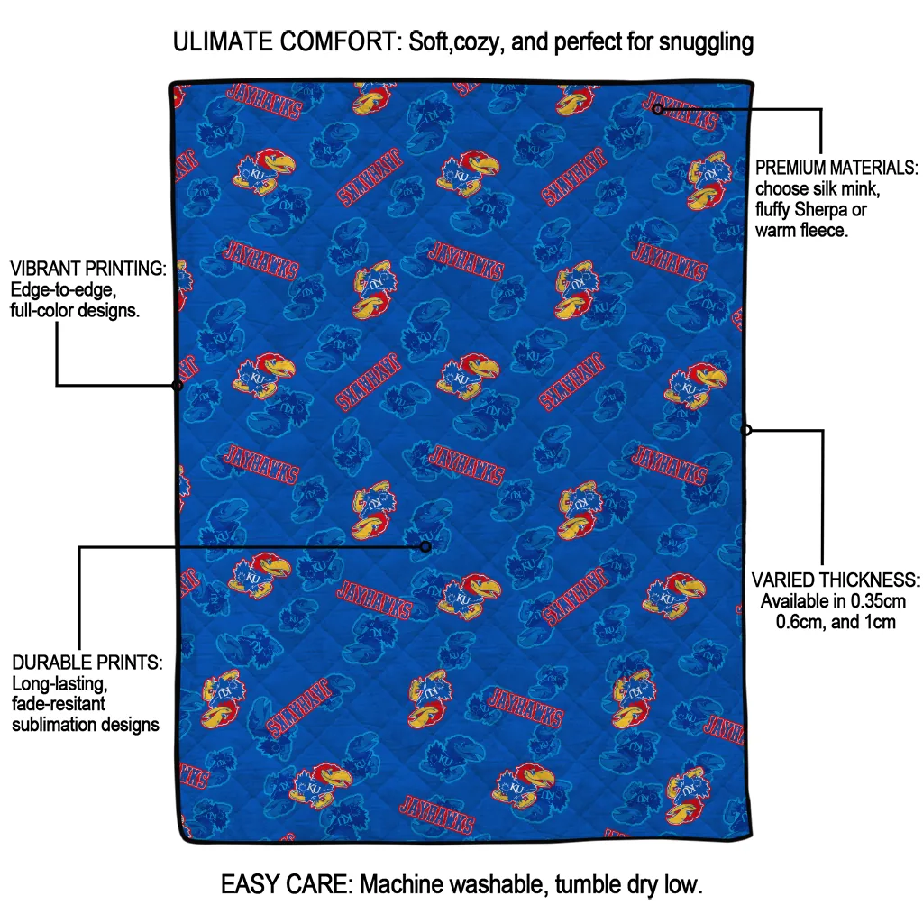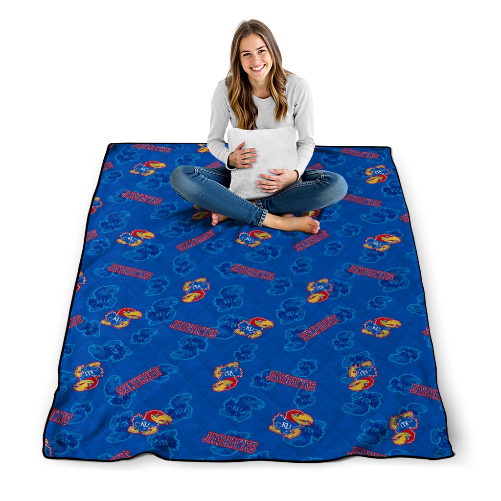 Wrap yourself in warmth and pride with the Kansas Jayhawks Solid Classic Blue Quilt Blanket from the Kansas Jayhawks Blankets collection at Yes That Blanket. Made from 100% premium quilting-weight polyester blended with a touch of microfiber, this quilt offers a smooth, soft finish you’ll love. Choose between two quilting styles—Stipple or Diagonal—and enjoy the comfort of a cotton-filled layer inside that adds extra coziness for every season. The border is available in classic black or white, giving your design a clean, timeless edge.