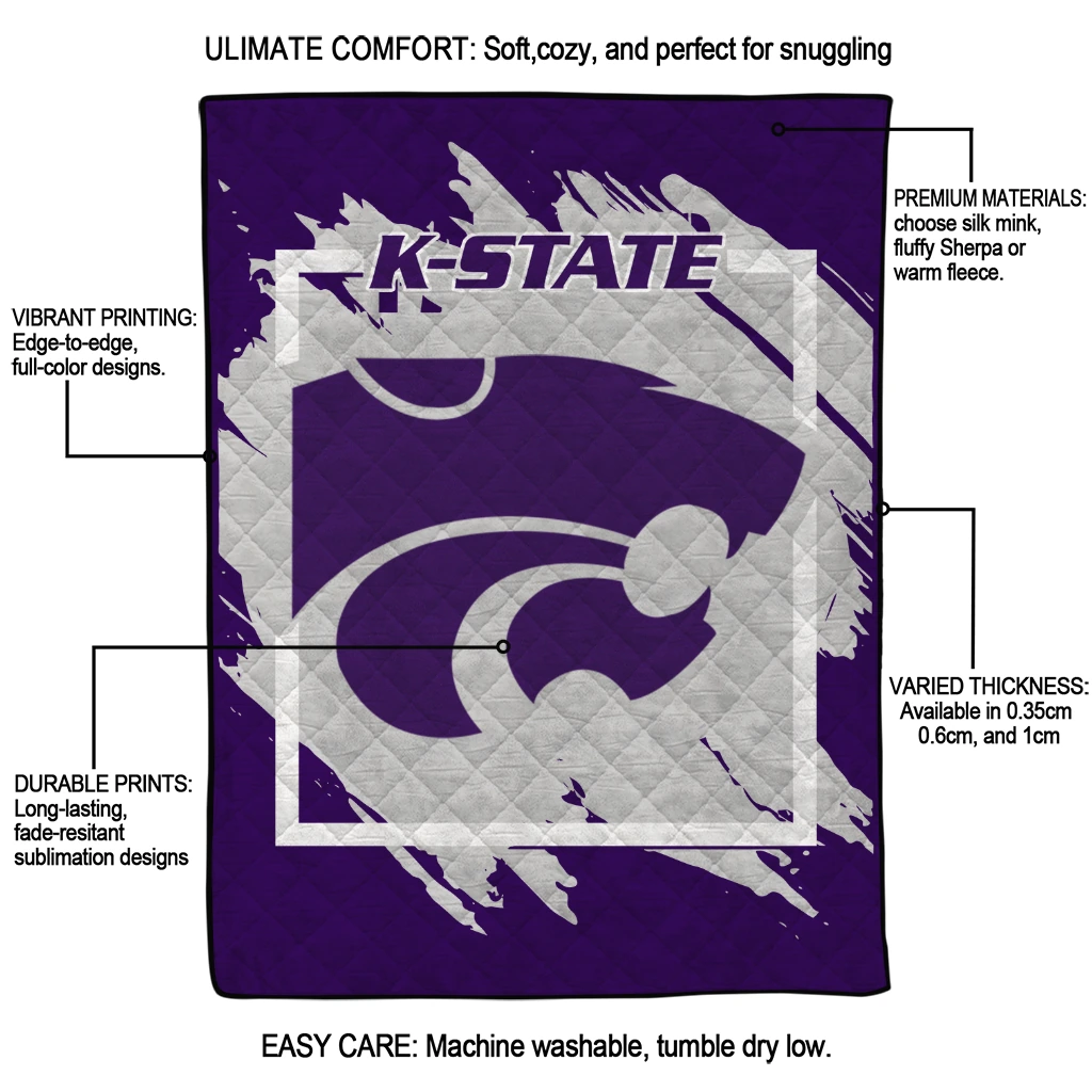 Wrap yourself in warmth and pride with the Kansas State Wildcats Block Border Purple Quilt Blanket from the Kansas State Wildcats Blankets collection at Yes That Blanket. Made from 100% premium quilting-weight polyester blended with a touch of microfiber, this quilt offers a smooth, soft finish you’ll love. Choose between two quilting styles—Stipple or Diagonal—and enjoy the comfort of a cotton-filled layer inside that adds extra coziness for every season. The border is available in classic black or white, giving your design a clean, timeless edge.