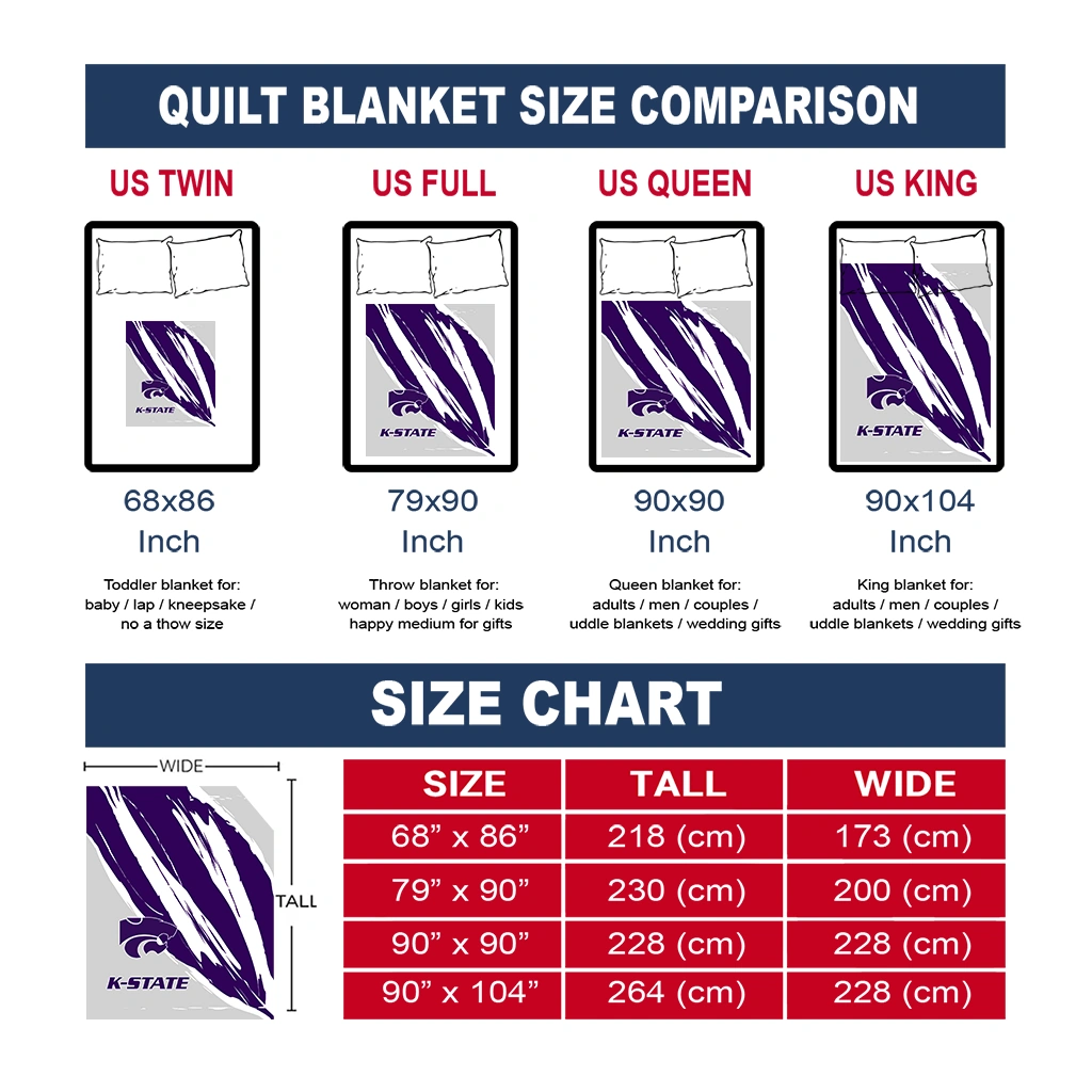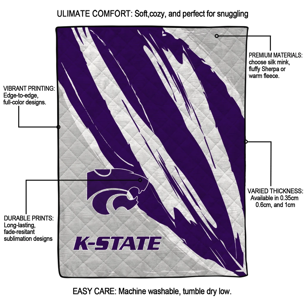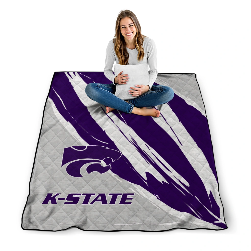 Wrap yourself in warmth and pride with the Kansas State Wildcats Stroke Art Purple White Quilt Blanket from the Kansas State Wildcats Blankets collection at Yes That Blanket. Made from 100% premium quilting-weight polyester blended with a touch of microfiber, this quilt offers a smooth, soft finish you’ll love. Choose between two quilting styles—Stipple or Diagonal—and enjoy the comfort of a cotton-filled layer inside that adds extra coziness for every season. The border is available in classic black or white, giving your design a clean, timeless edge.