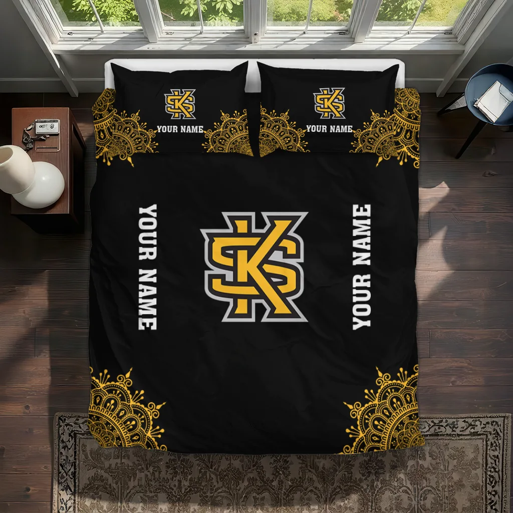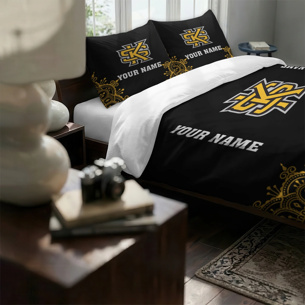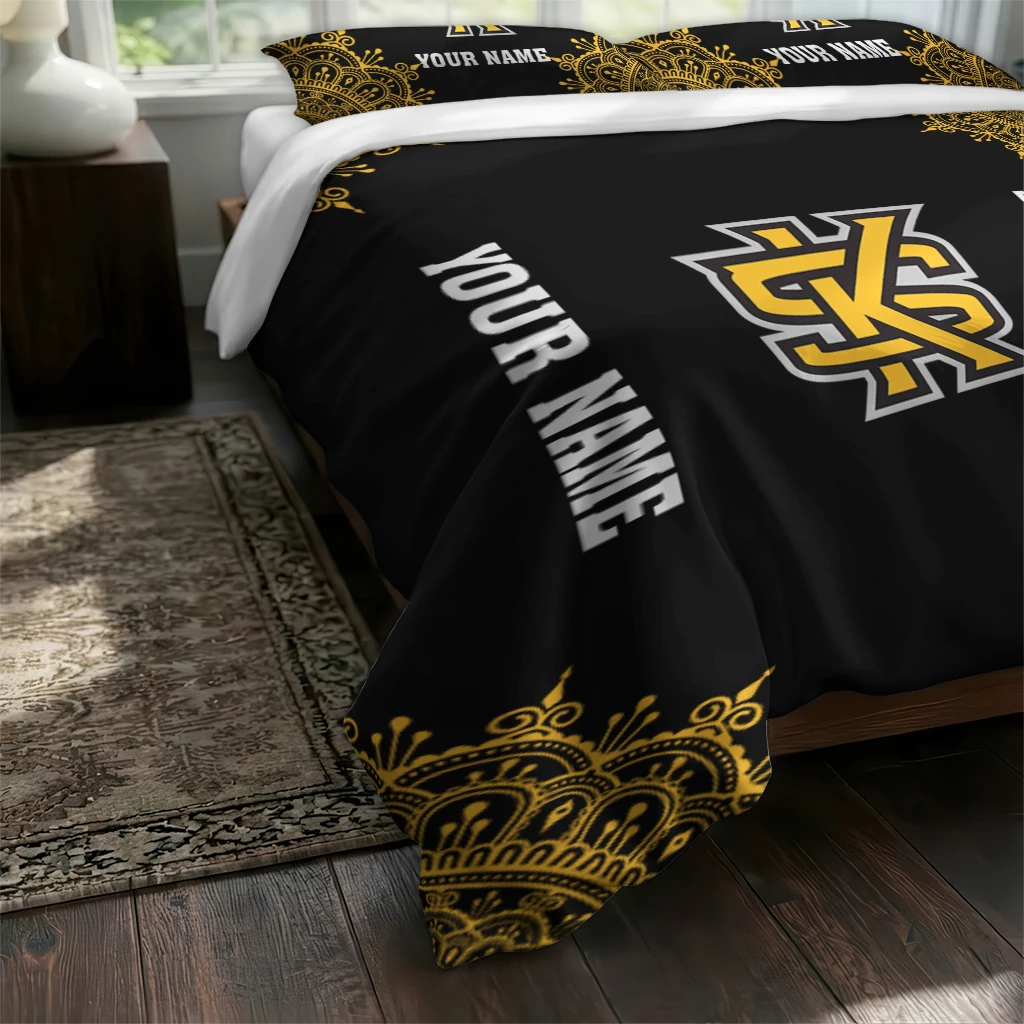 Kennesaw State Owls Bedding Set – Custom Mandala Lacework Black Yellow