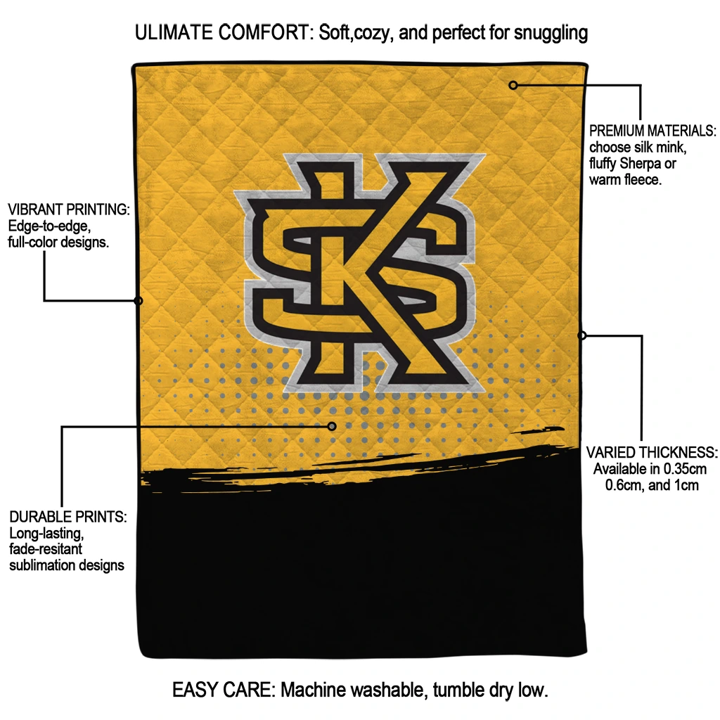 Wrap yourself in warmth and pride with the Kennesaw State Owls Dot Illusion Gold Quilt Blanket from the Kennesaw State Owls Blankets collection at Yes That Blanket. Made from 100% premium quilting-weight polyester blended with a touch of microfiber, this quilt offers a smooth, soft finish you’ll love. Choose between two quilting styles—Stipple or Diagonal—and enjoy the comfort of a cotton-filled layer inside that adds extra coziness for every season. The border is available in classic black or white, giving your design a clean, timeless edge.