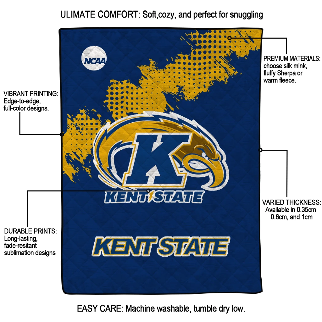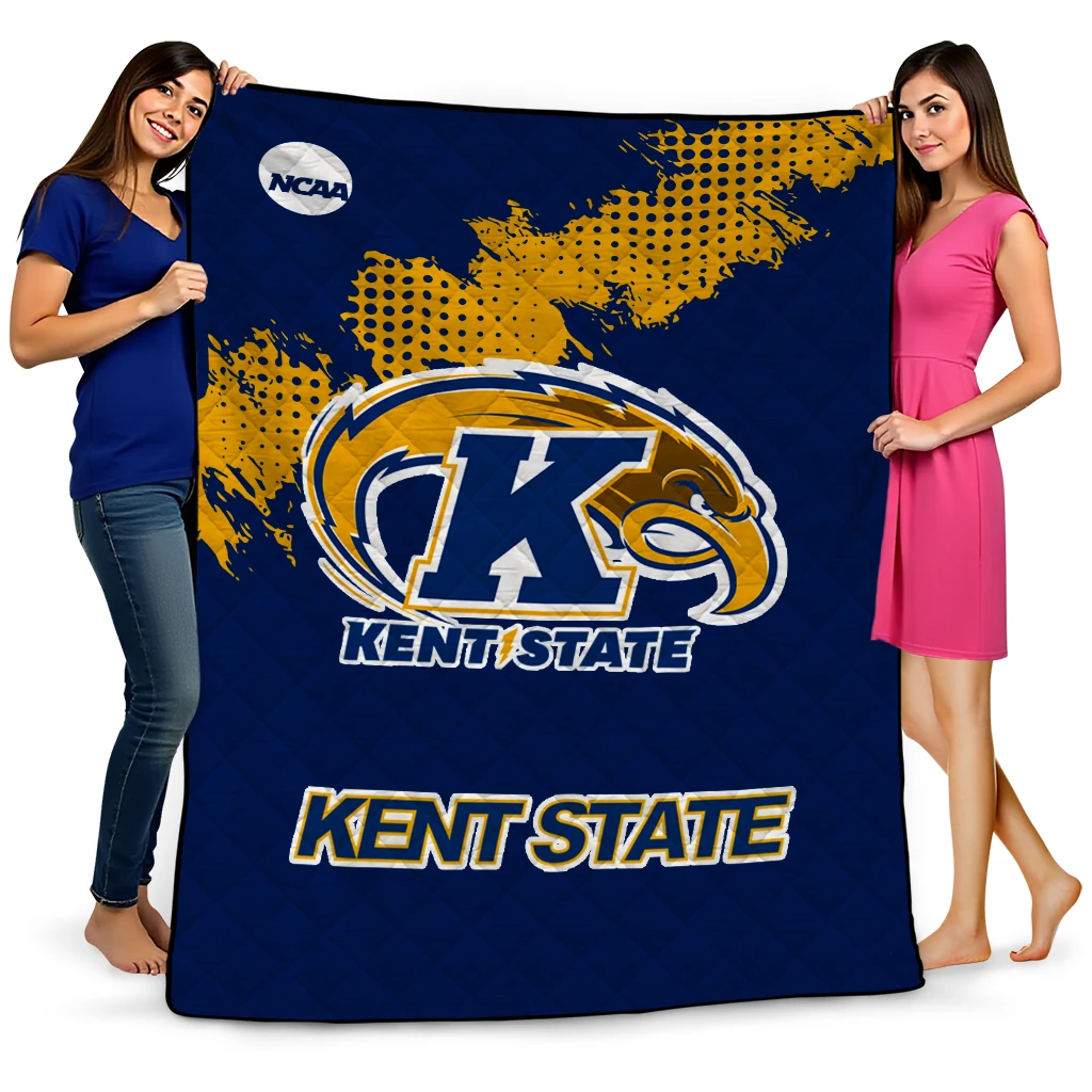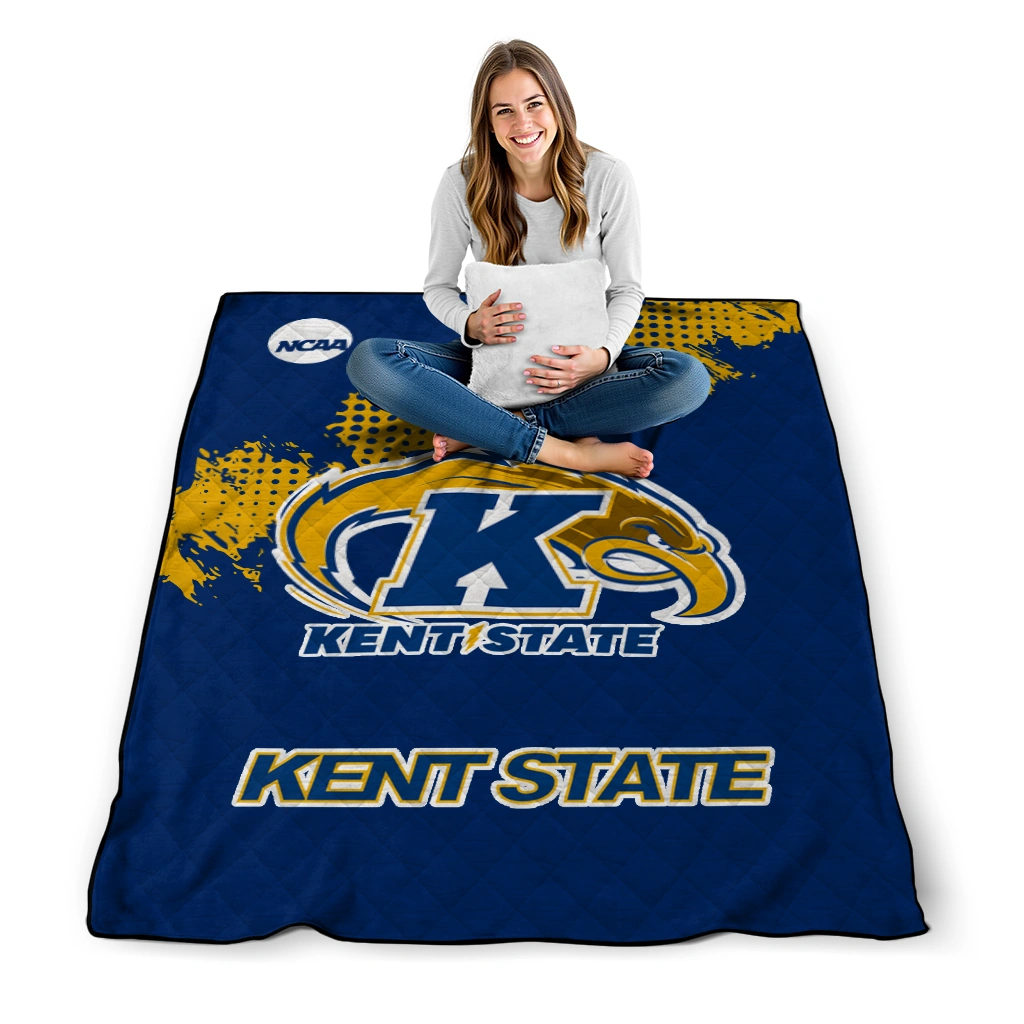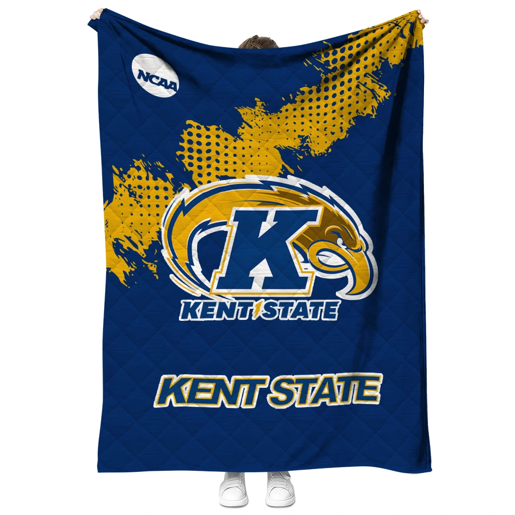 Wrap yourself in warmth and pride with the Kent State Golden Flashes Paint Trail Navy Blue Quilt Blanket from the Kent State Golden Flashes Blankets collection at Yes That Blanket. Made from 100% premium quilting-weight polyester blended with a touch of microfiber, this quilt offers a smooth, soft finish you’ll love. Choose between two quilting styles—Stipple or Diagonal—and enjoy the comfort of a cotton-filled layer inside that adds extra coziness for every season. The border is available in classic black or white, giving your design a clean, timeless edge.