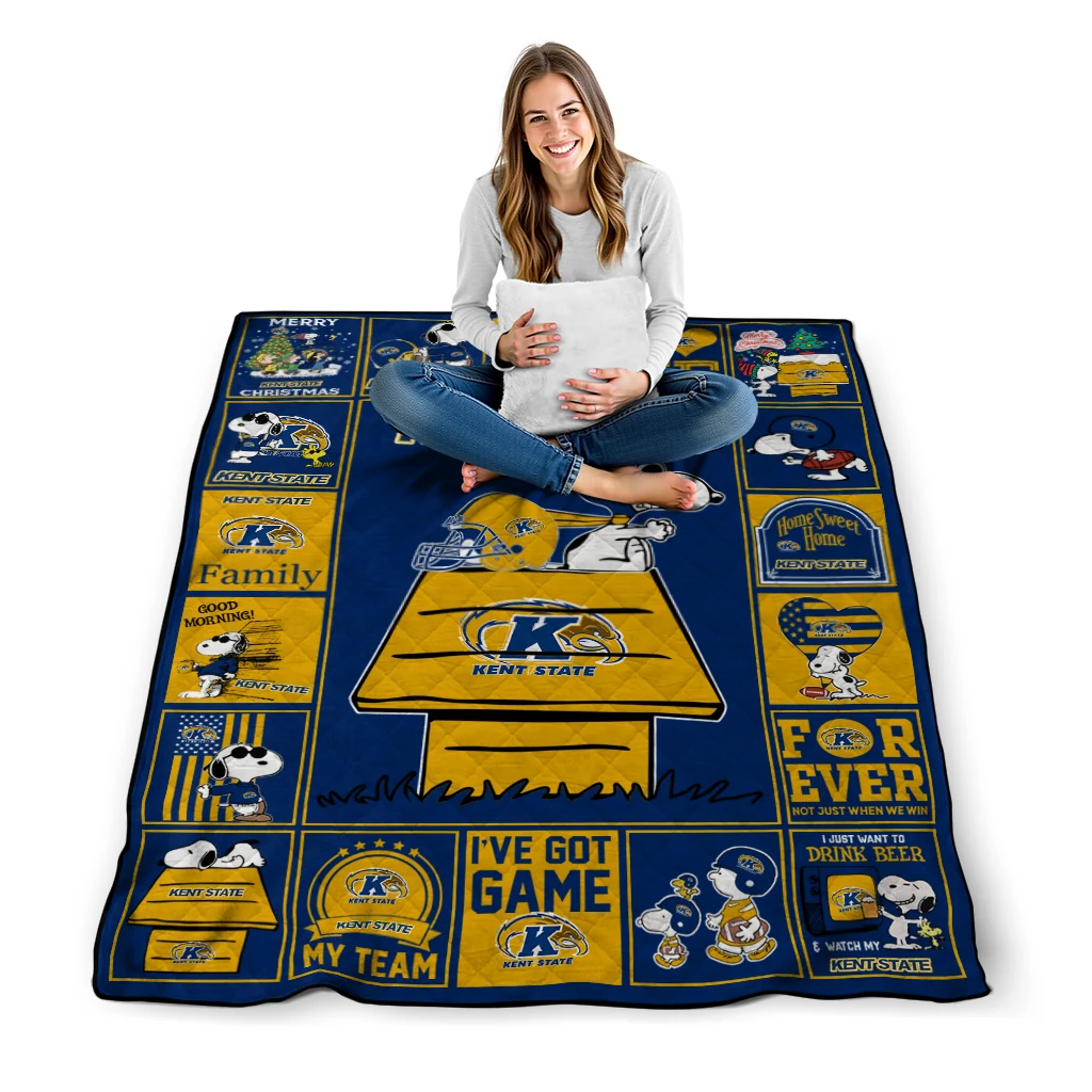The Kent State Golden Flashes Snoopy Love Navy Blue Quilt Blanket is more than a blanket—it’s everyday comfort, thoughtfully made. Crafted from premium quilting fabric with a soft microfiber touch, it offers a smooth hand-feel and lasting coziness. Layered quilting with a cotton-filled core provides adaptable warmth across seasons while maintaining a clean, tailored look on your bed or sofa.