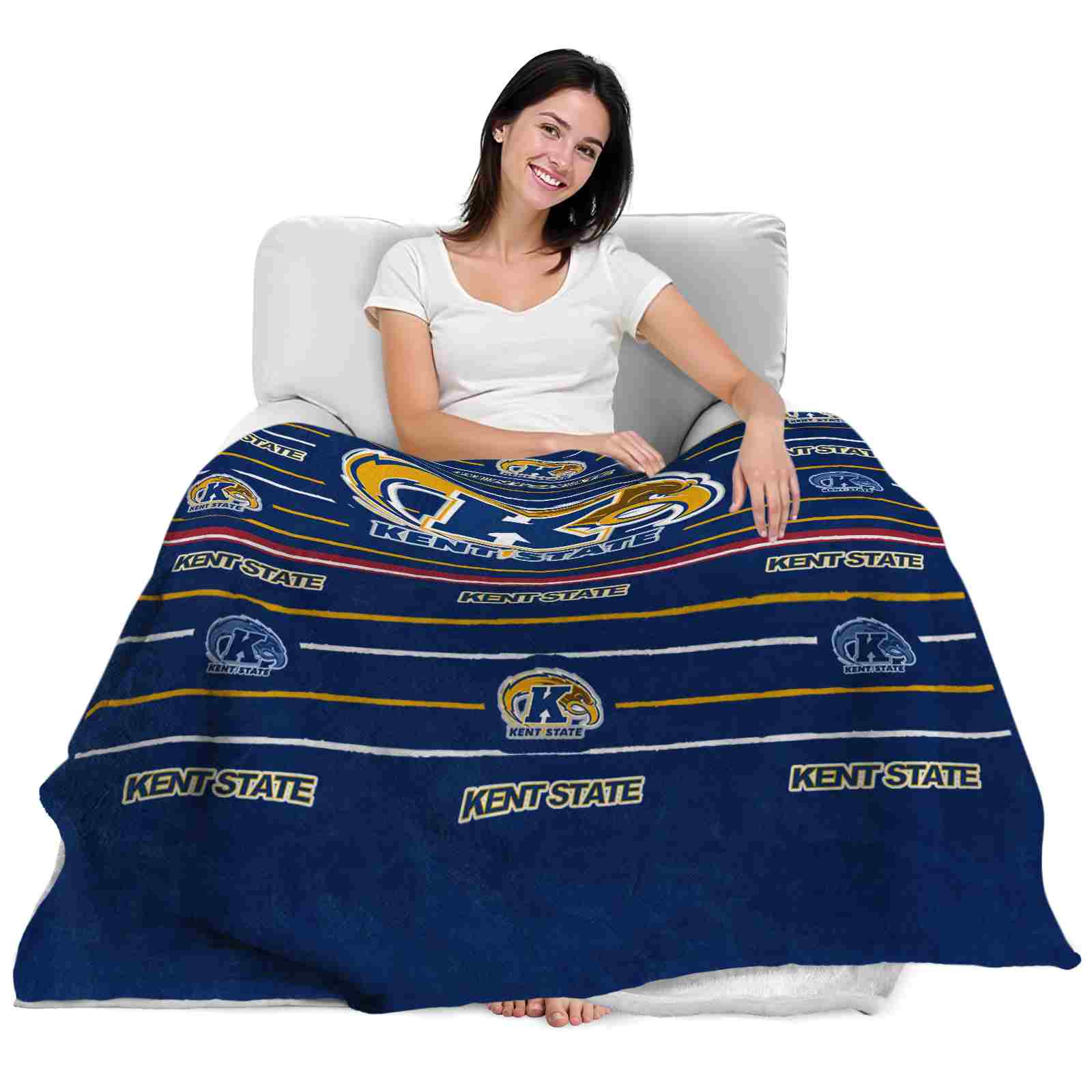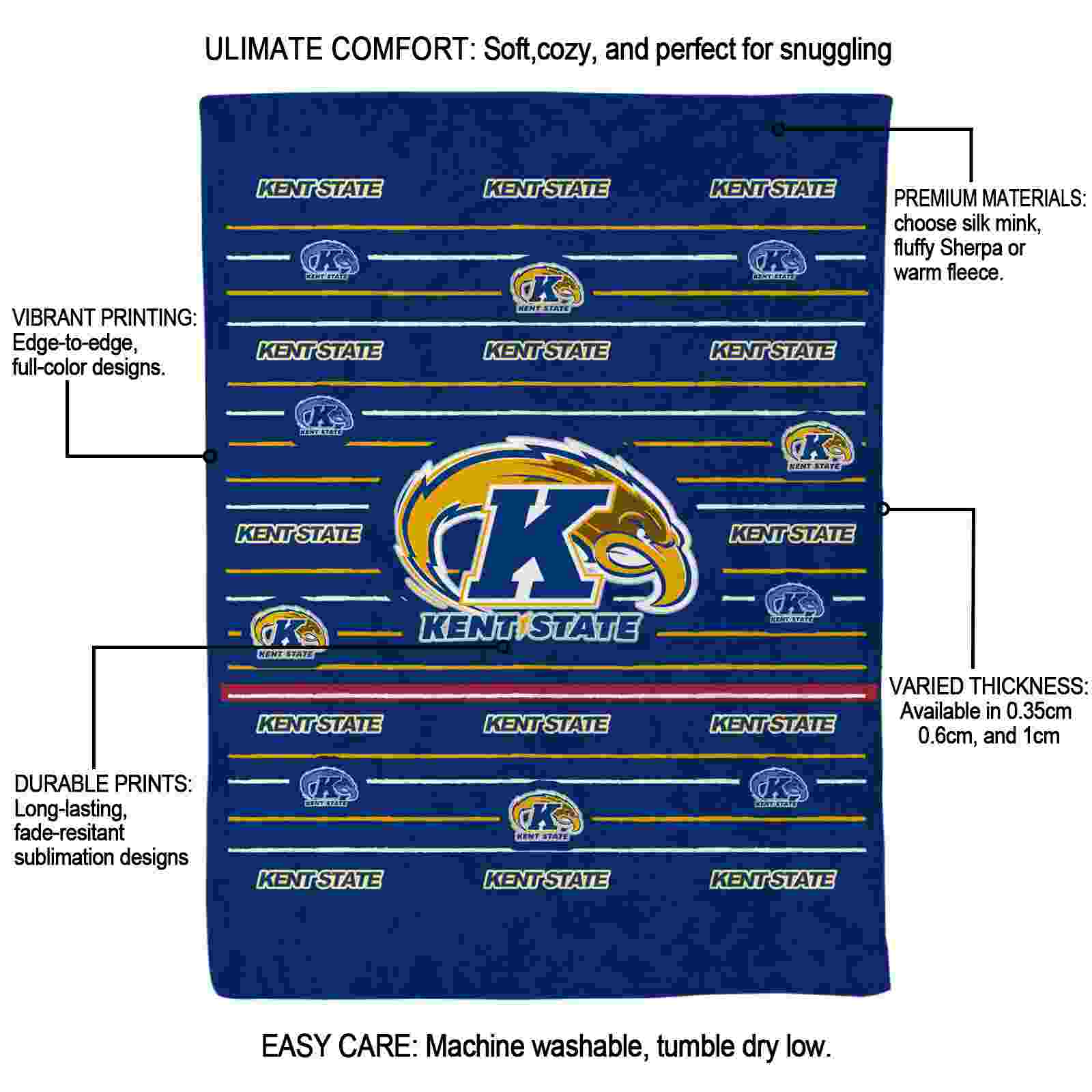 Without a doubt, the Kent State Golden Flashes Striped Pattern Navy Blue Blanket from Kent State Golden Flashes Blankets collection is offering true fans a chance to showcase passion in a cool way. Personalize it with your favorite team’s logo or a meaningful name to make it uniquely yours. Isn’t that great? The full-color print ensures vibrant, edge-to-edge designs, bringing your sports enthusiasm to life!