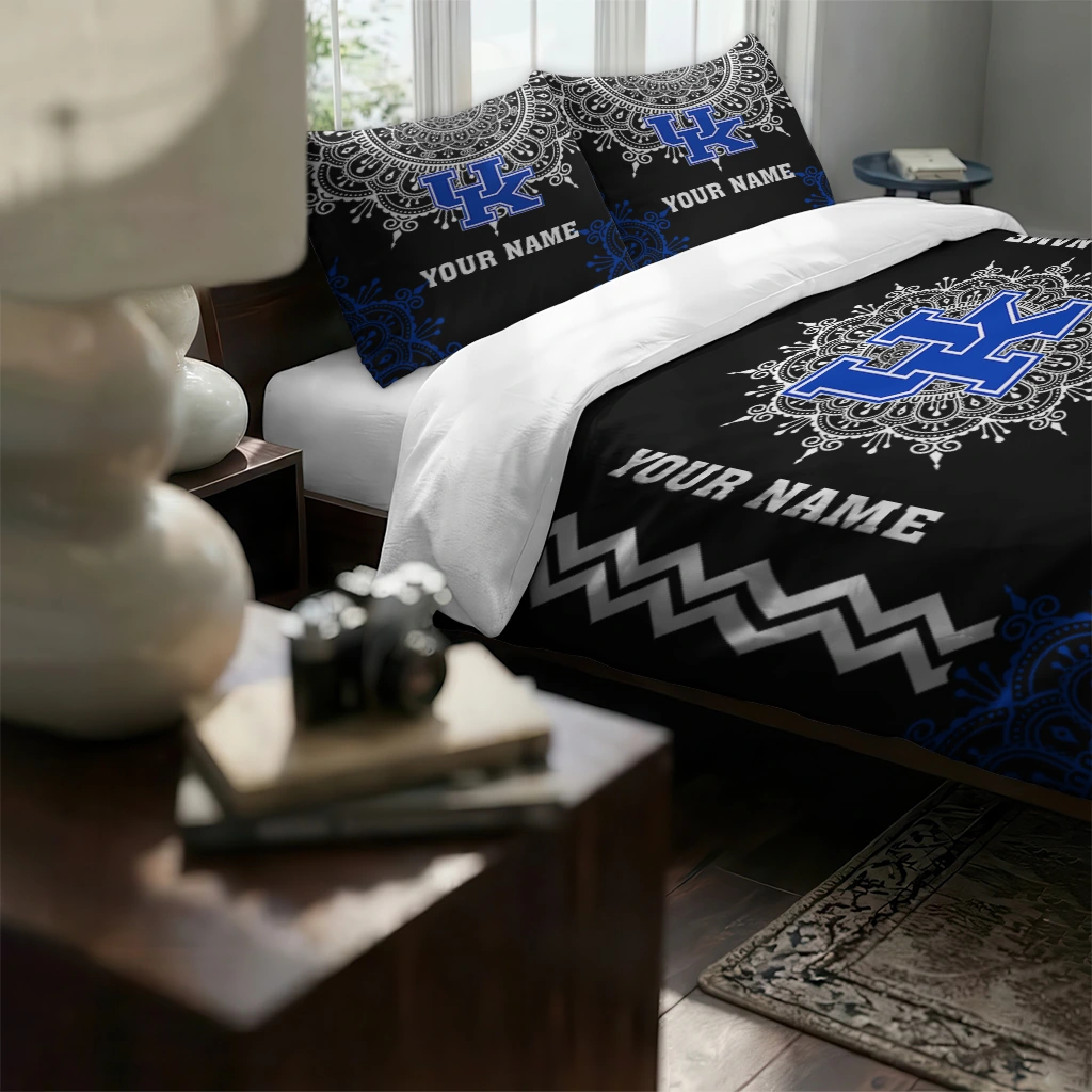 Kentucky Wildcats Bedding Set – Personalized Mandala Lacework Black Blue