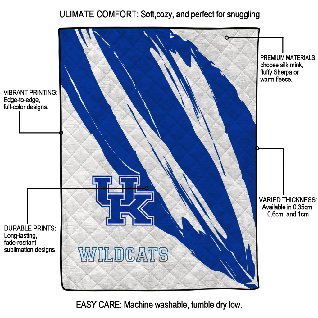 Kentucky Wildcats Stroke Art Blue White Quilt Blanket