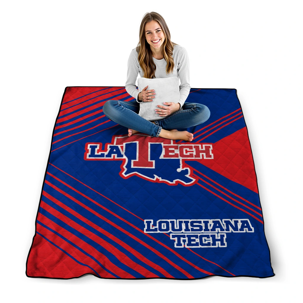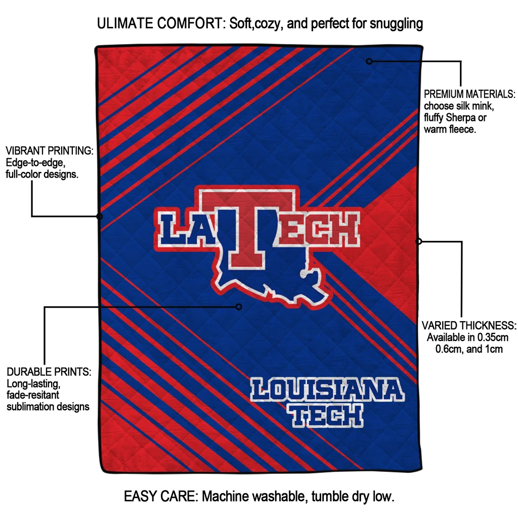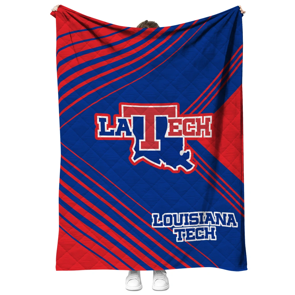 Wrap yourself in warmth and pride with the LA Tech Arrow Layers Blue Quilt Blanket from the LA Tech Blankets collection at Yes That Blanket. Made from 100% premium quilting-weight polyester blended with a touch of microfiber, this quilt offers a smooth, soft finish you’ll love. Choose between two quilting styles—Stipple or Diagonal—and enjoy the comfort of a cotton-filled layer inside that adds extra coziness for every season. The border is available in classic black or white, giving your design a clean, timeless edge.