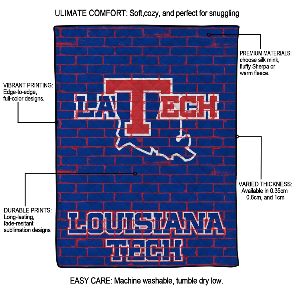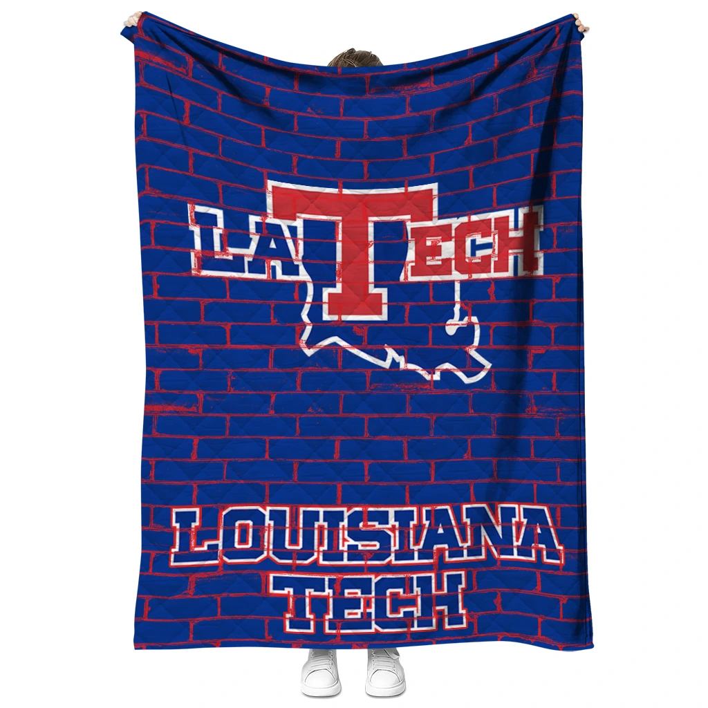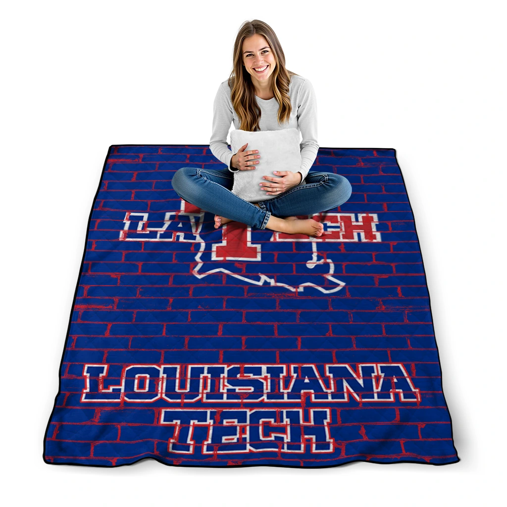 Wrap yourself in warmth and pride with the LA Tech Brick Grid Blue Quilt Blanket from the LA Tech Blankets collection at Yes That Blanket. Made from 100% premium quilting-weight polyester blended with a touch of microfiber, this quilt offers a smooth, soft finish you’ll love. Choose between two quilting styles—Stipple or Diagonal—and enjoy the comfort of a cotton-filled layer inside that adds extra coziness for every season. The border is available in classic black or white, giving your design a clean, timeless edge.