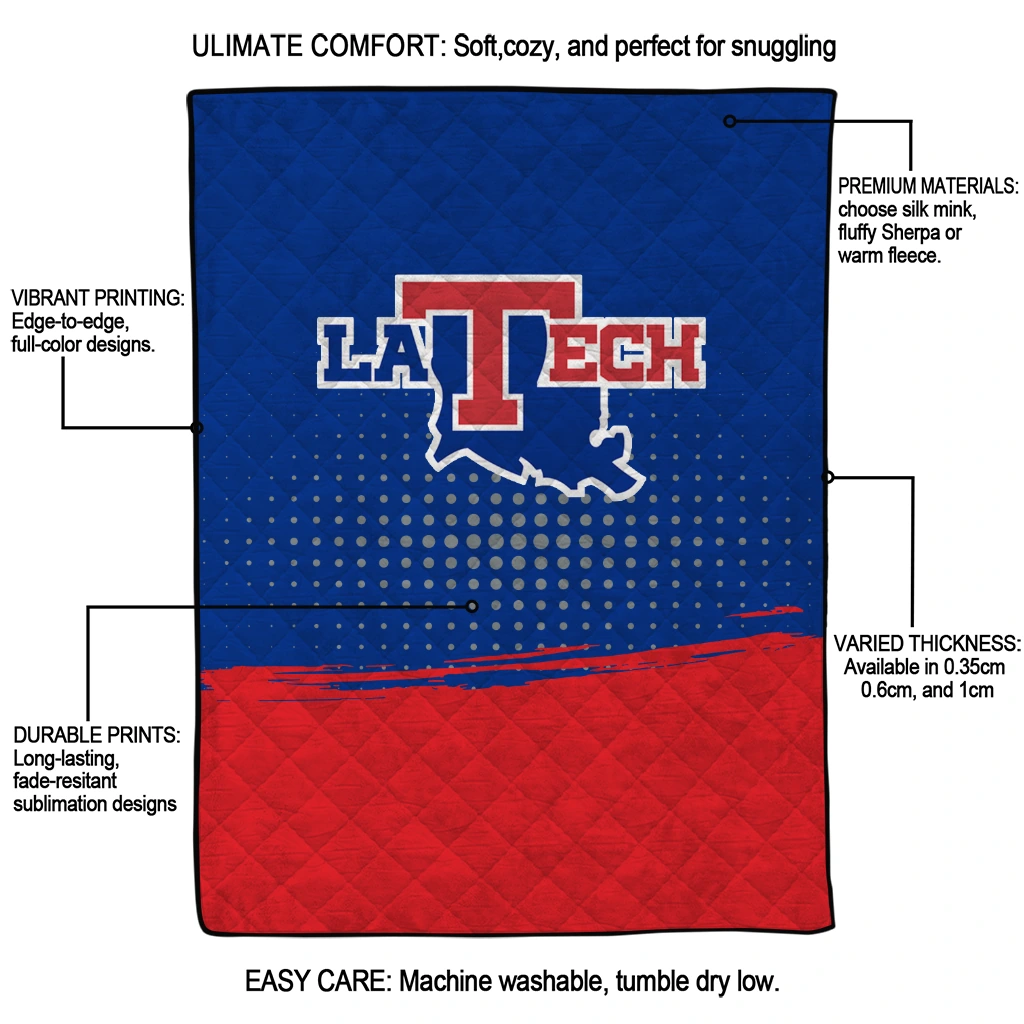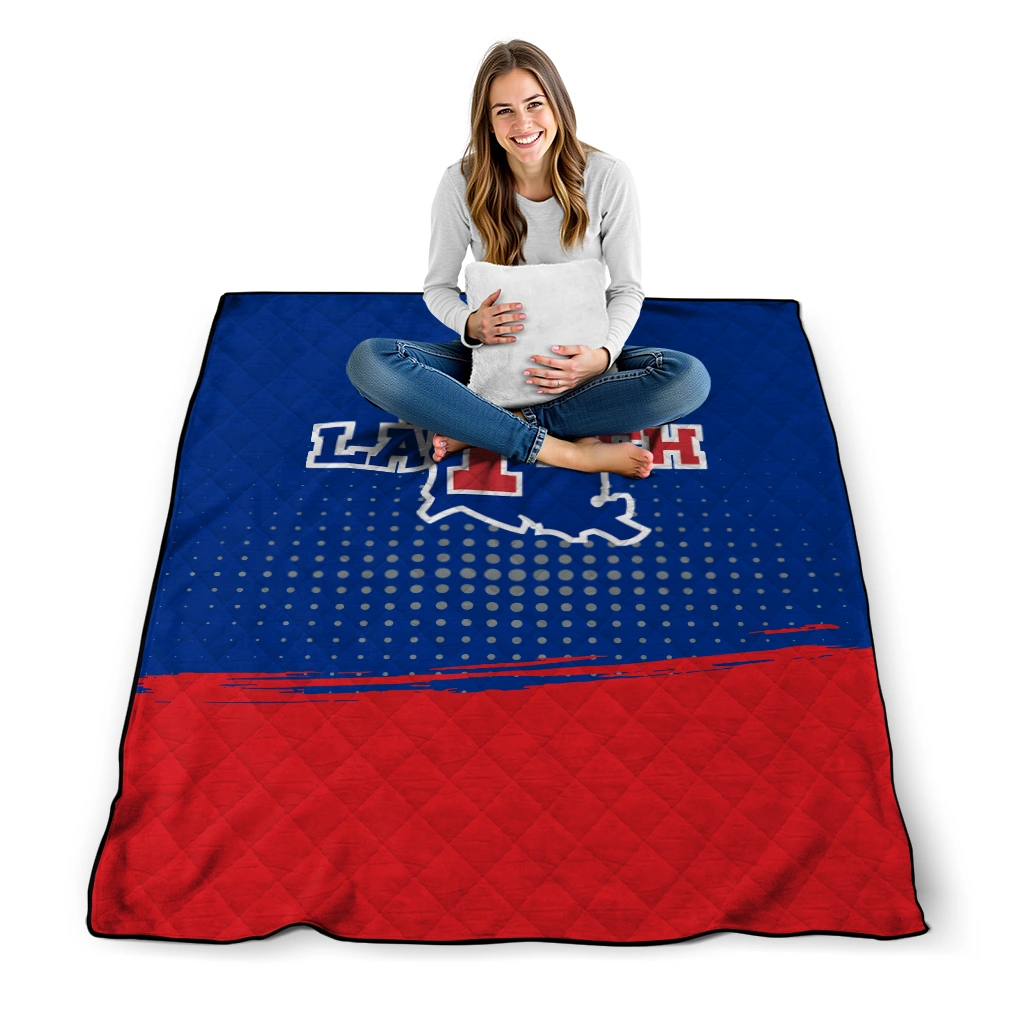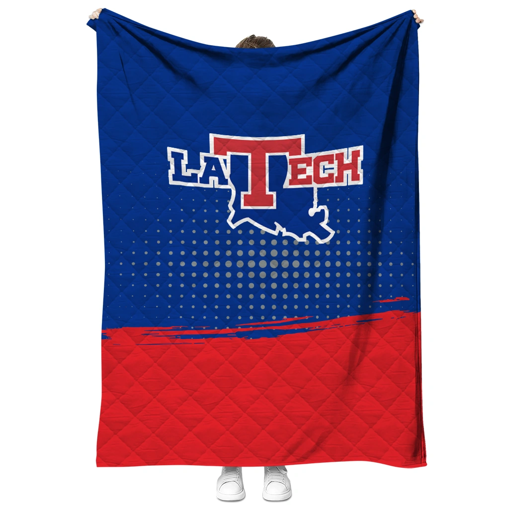 Wrap yourself in warmth and pride with the LA Tech Dot Illusion Blue Quilt Blanket from the LA Tech Blankets collection at Yes That Blanket. Made from 100% premium quilting-weight polyester blended with a touch of microfiber, this quilt offers a smooth, soft finish you’ll love. Choose between two quilting styles—Stipple or Diagonal—and enjoy the comfort of a cotton-filled layer inside that adds extra coziness for every season. The border is available in classic black or white, giving your design a clean, timeless edge.