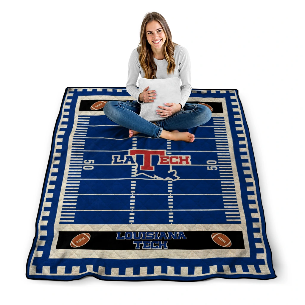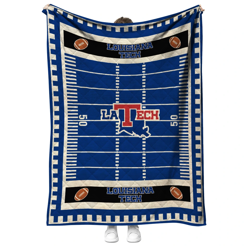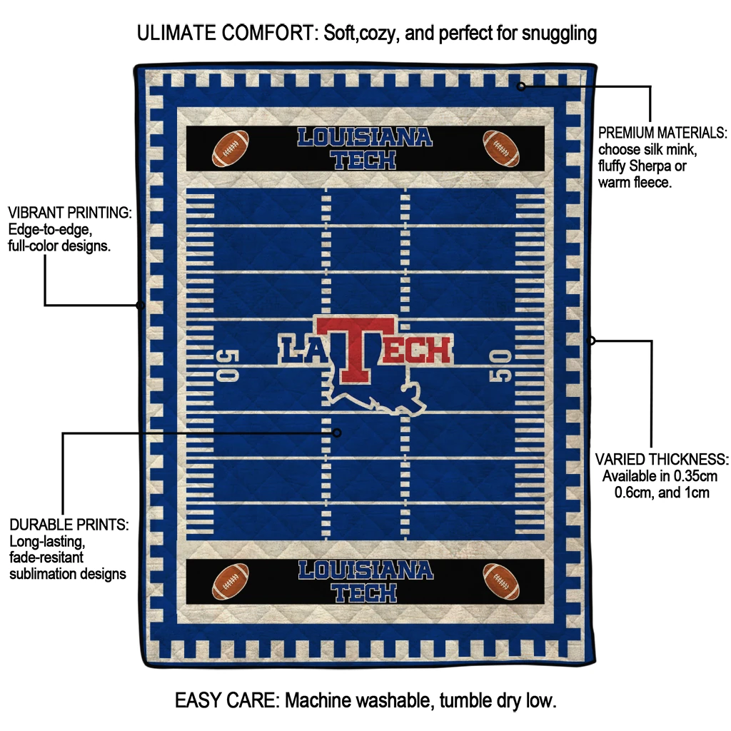Wrap yourself in warmth and pride with the LA Tech Mickey Player Blue Quilt Blanket from the LA Tech Blankets collection at Yes That Blanket. Made from 100% premium quilting-weight polyester blended with a touch of microfiber, this quilt offers a smooth, soft finish you’ll love. Choose between two quilting styles—Stipple or Diagonal—and enjoy the comfort of a cotton-filled layer inside that adds extra coziness for every season. The border is available in classic black or white, giving your design a clean, timeless edge.