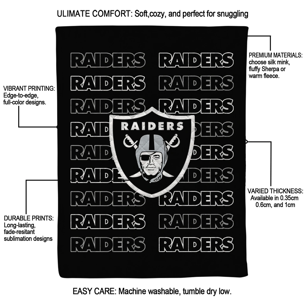 The Las Vegas Raiders Bold Red Black Quilt Blanket is more than a blanket—it’s everyday comfort, thoughtfully made. Crafted from premium quilting fabric with a soft microfiber touch, it offers a smooth hand-feel and lasting coziness. Layered quilting with a cotton-filled core provides adaptable warmth across seasons while maintaining a clean, tailored look on your bed or sofa.