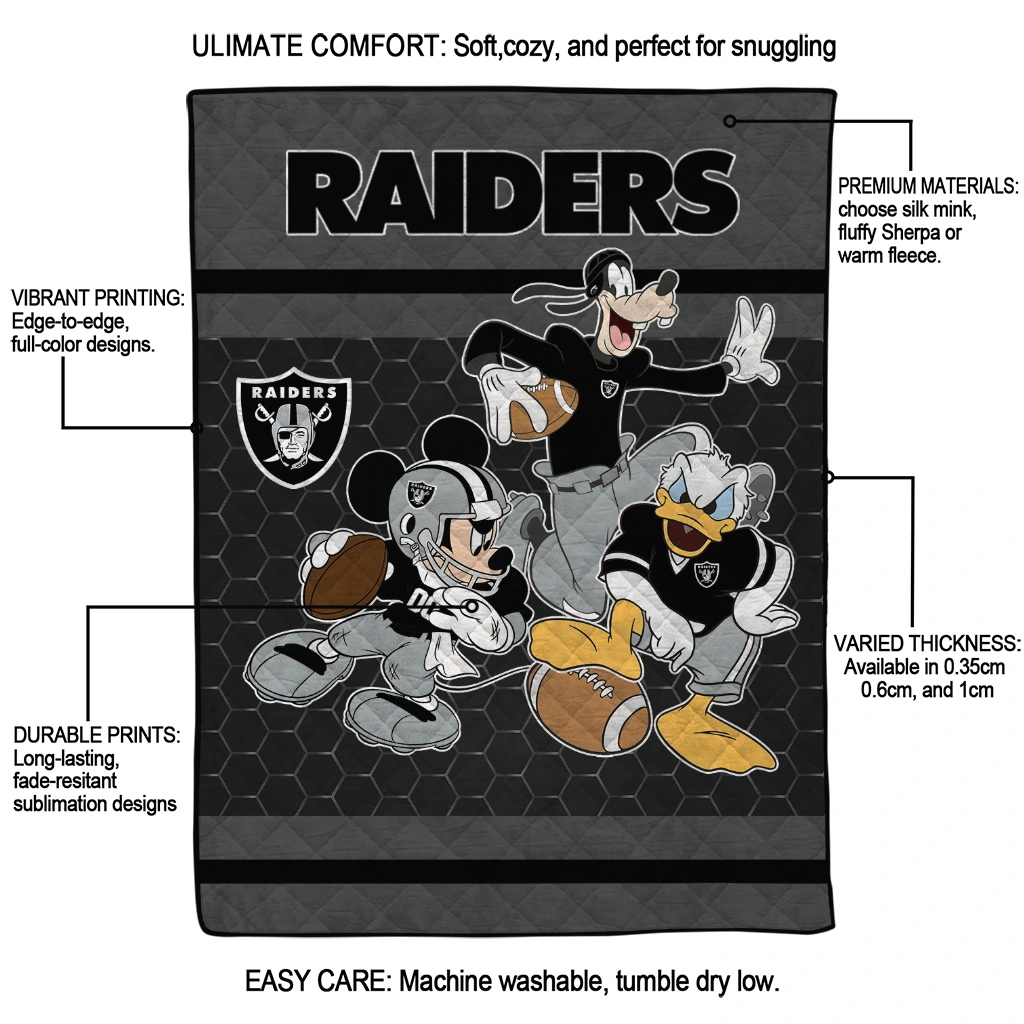 Las Vegas Raiders Disney Football Black Quilt Blanket