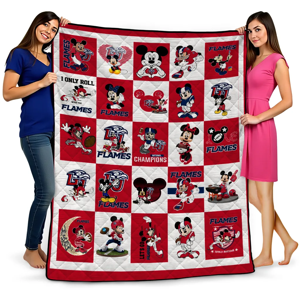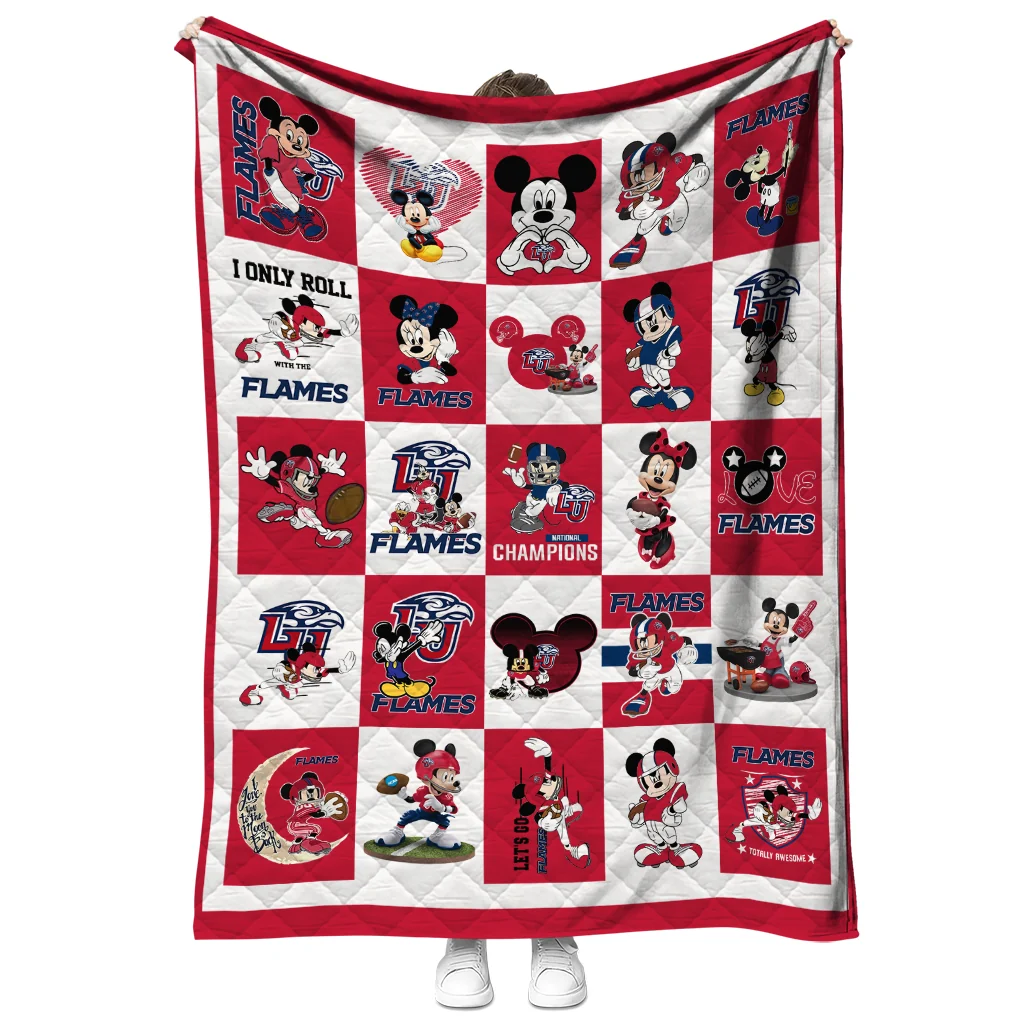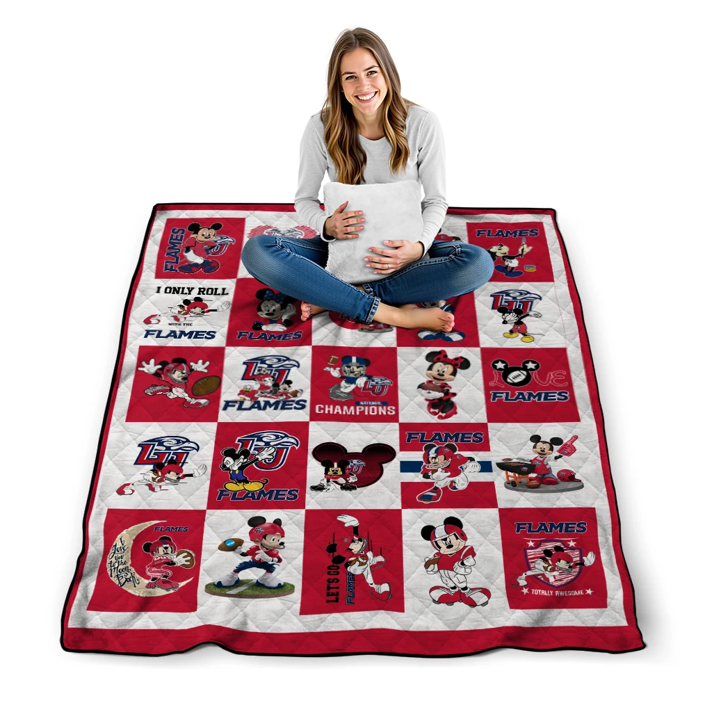 Wrap yourself in warmth and pride with the Liberty Flames Mickey Mouse Motif Red White Quilt Blanket from the Liberty Flames Blankets collection at Yes That Blanket. Made from 100% premium quilting-weight polyester blended with a touch of microfiber, this quilt offers a smooth, soft finish you’ll love. Choose between two quilting styles—Stipple or Diagonal—and enjoy the comfort of a cotton-filled layer inside that adds extra coziness for every season. The border is available in classic black or white, giving your design a clean, timeless edge.