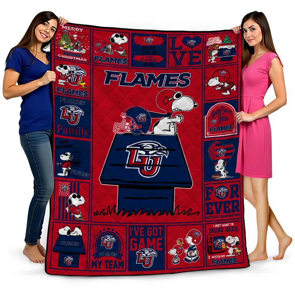 Wrap yourself in warmth and pride with the Liberty Flames Snoopy Love Red Quilt Blanket from the Liberty Flames Blankets collection at Yes That Blanket. Made from 100% premium quilting-weight polyester blended with a touch of microfiber, this quilt offers a smooth, soft finish you’ll love. Choose between two quilting styles—Stipple or Diagonal—and enjoy the comfort of a cotton-filled layer inside that adds extra coziness for every season. The border is available in classic black or white, giving your design a clean, timeless edge.