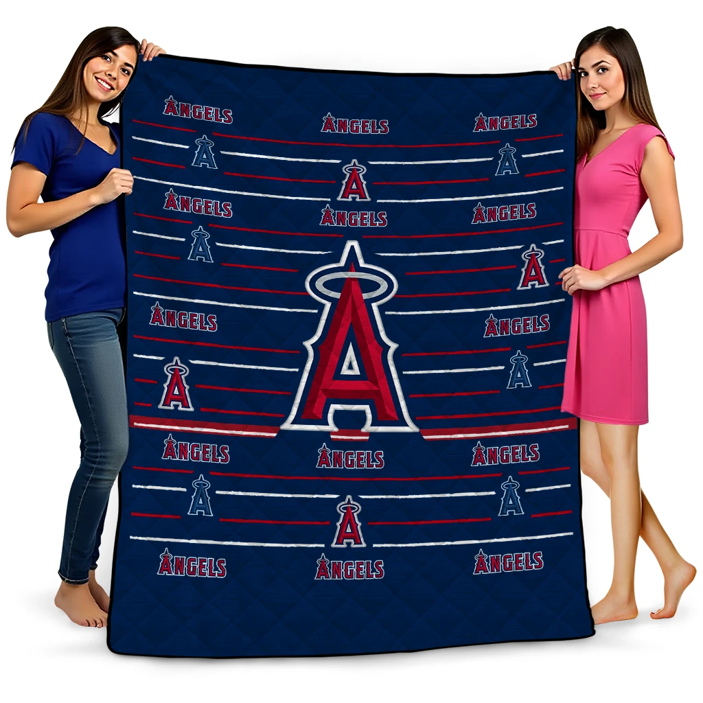 Wrap yourself in warmth and pride with the Los Angeles Angels Handdrawn Stripes Blue Quilt Blanket from the Los Angeles Angels Blankets collection at Yes That Blanket. Made from 100% premium quilting-weight polyester blended with a touch of microfiber, this quilt offers a smooth, soft finish you’ll love. Choose between two quilting styles—Stipple or Diagonal—and enjoy the comfort of a cotton-filled layer inside that adds extra coziness for every season. The border is available in classic black or white, giving your design a clean, timeless edge.