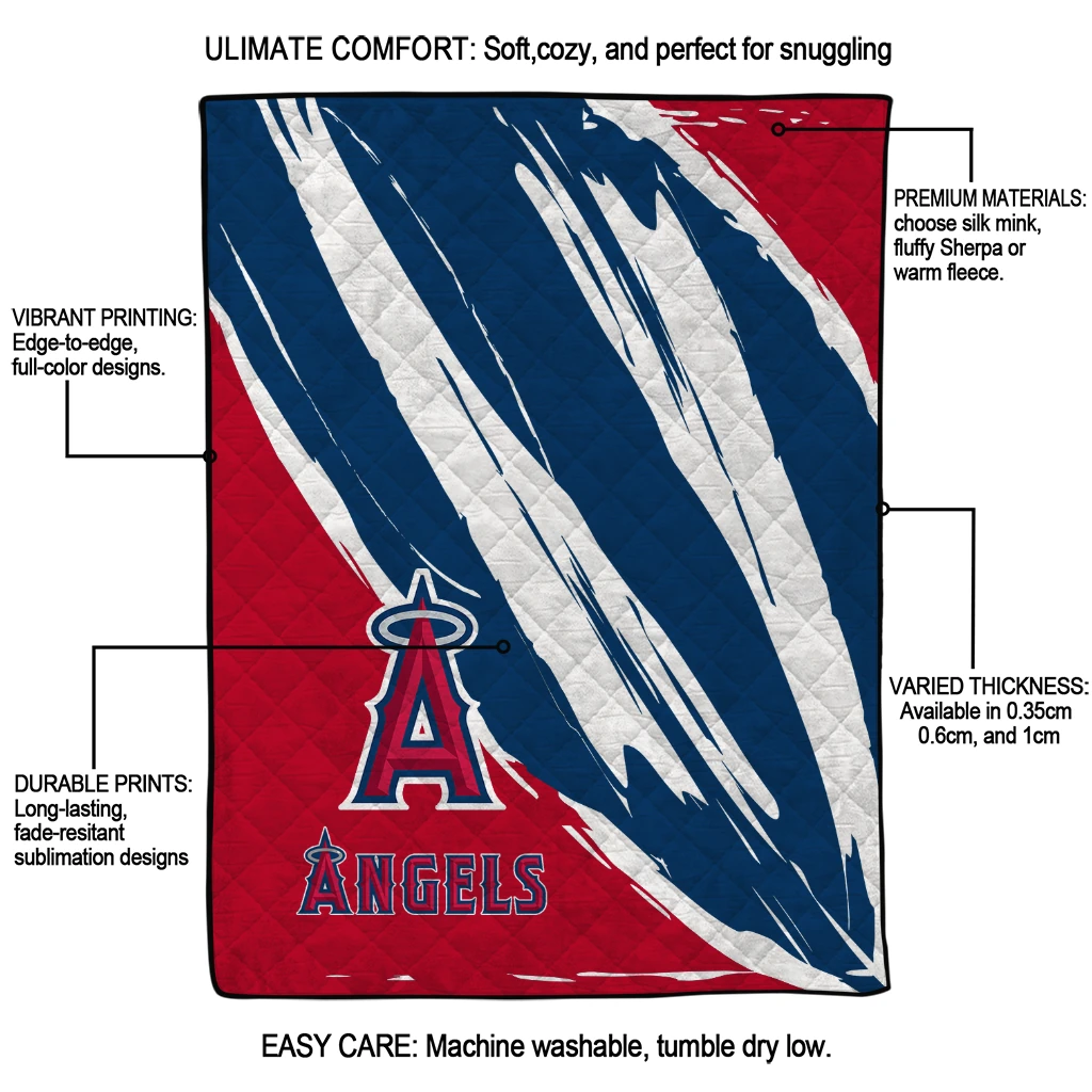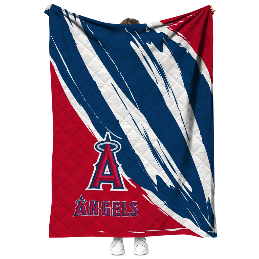 Los Angeles Angels Stroke Art Blue White Quilt Blanket