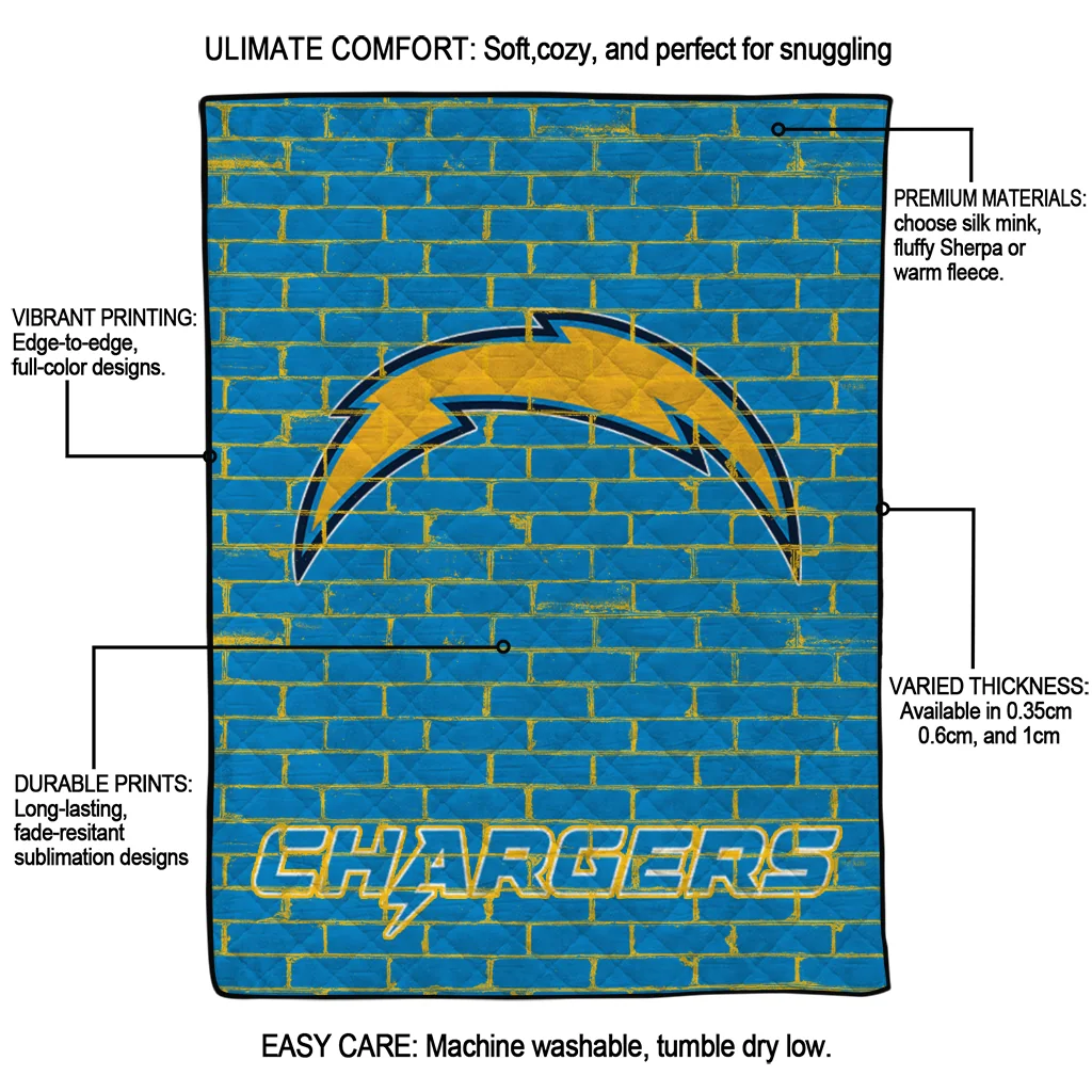 The Los Angeles Chargers Brick Grid Blue Quilt Blanket is more than a blanket—it’s everyday comfort, thoughtfully made. Crafted from premium quilting fabric with a soft microfiber touch, it offers a smooth hand-feel and lasting coziness. Layered quilting with a cotton-filled core provides adaptable warmth across seasons while maintaining a clean, tailored look on your bed or sofa.