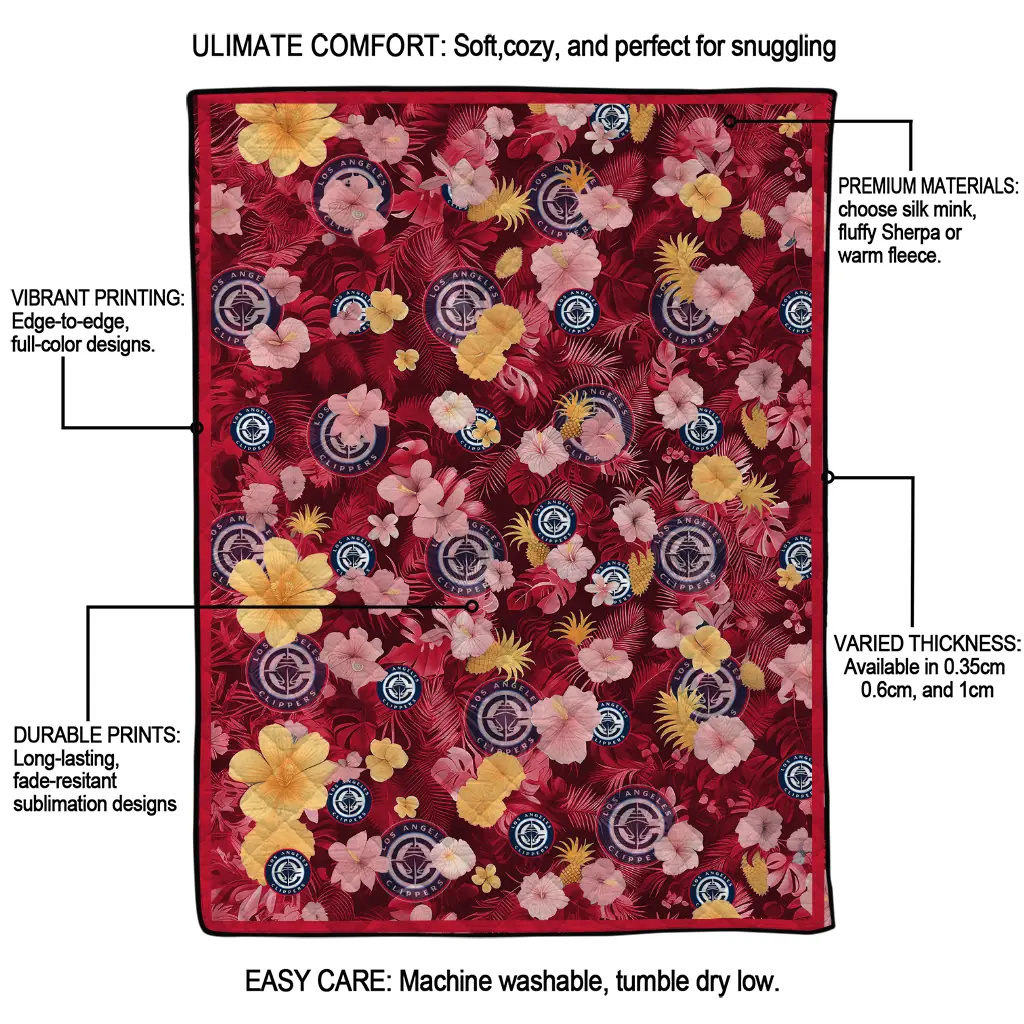 Wrap yourself in warmth and pride with the Los Angeles Clippers Hibiscus Foliage Red Quilt Blanket from the Los Angeles Clippers Blankets collection at Yes That Blanket. Made from 100% premium quilting-weight polyester blended with a touch of microfiber, this quilt offers a smooth, soft finish you’ll love. Choose between two quilting styles—Stipple or Diagonal—and enjoy the comfort of a cotton-filled layer inside that adds extra coziness for every season. The border is available in classic black or white, giving your design a clean, timeless edge.