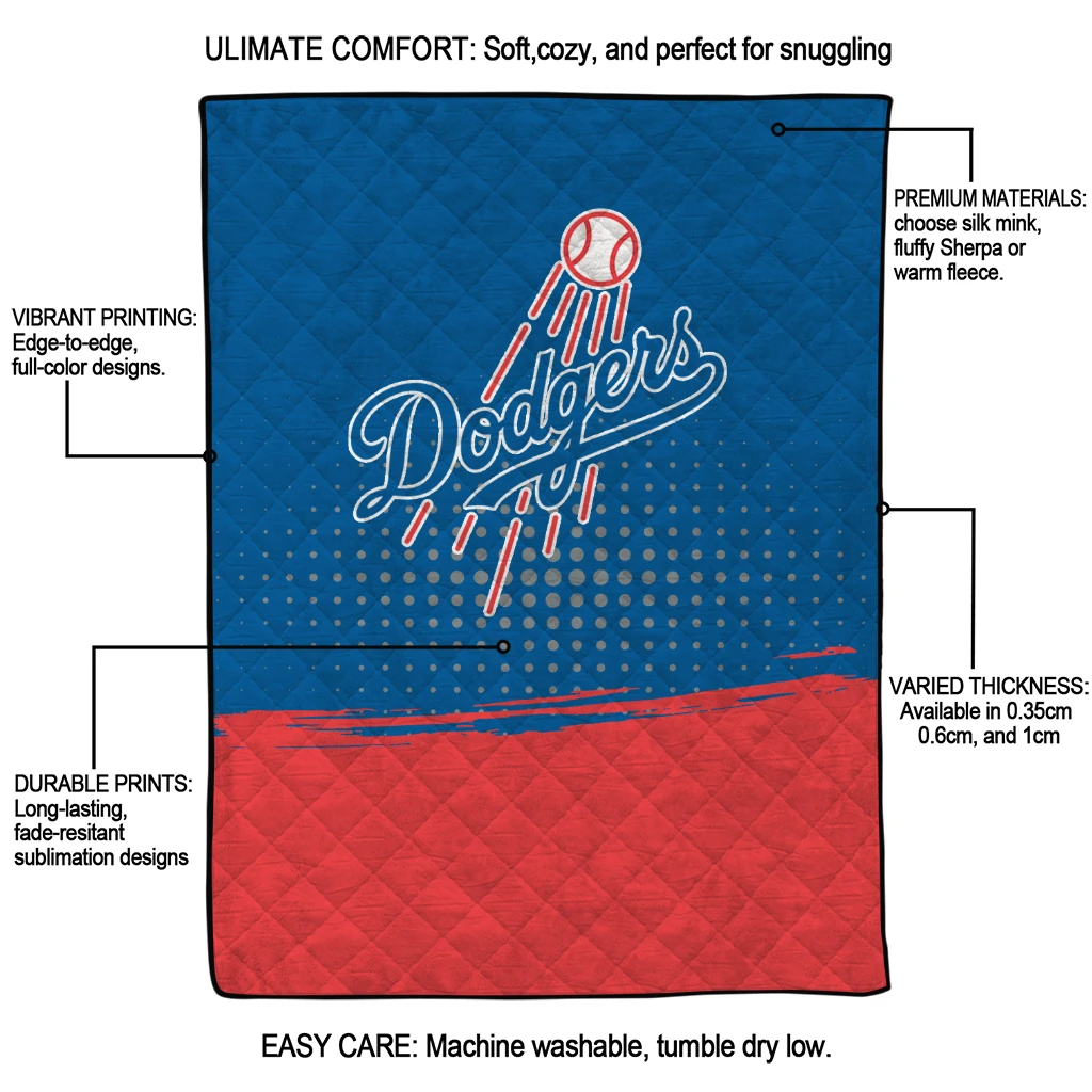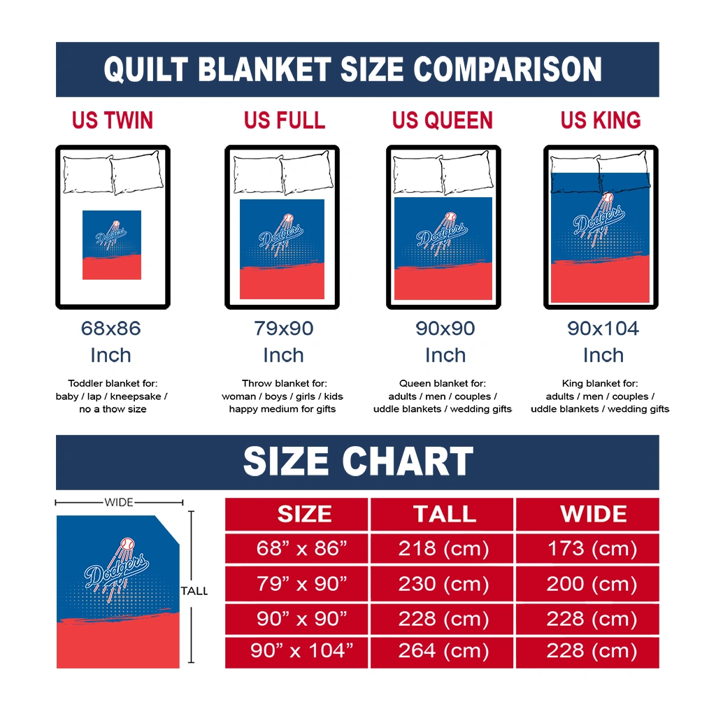 Wrap yourself in warmth and pride with the Los Angeles Dodgers Dot Illusion Blue Quilt Blanket from the Los Angeles Dodgers Blankets collection at Yes That Blanket. Made from 100% premium quilting-weight polyester blended with a touch of microfiber, this quilt offers a smooth, soft finish you’ll love. Choose between two quilting styles—Stipple or Diagonal—and enjoy the comfort of a cotton-filled layer inside that adds extra coziness for every season. The border is available in classic black or white, giving your design a clean, timeless edge.