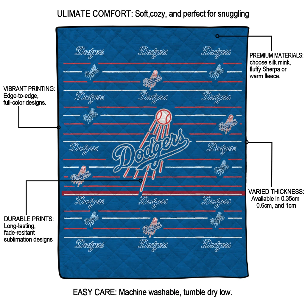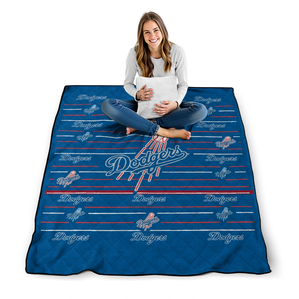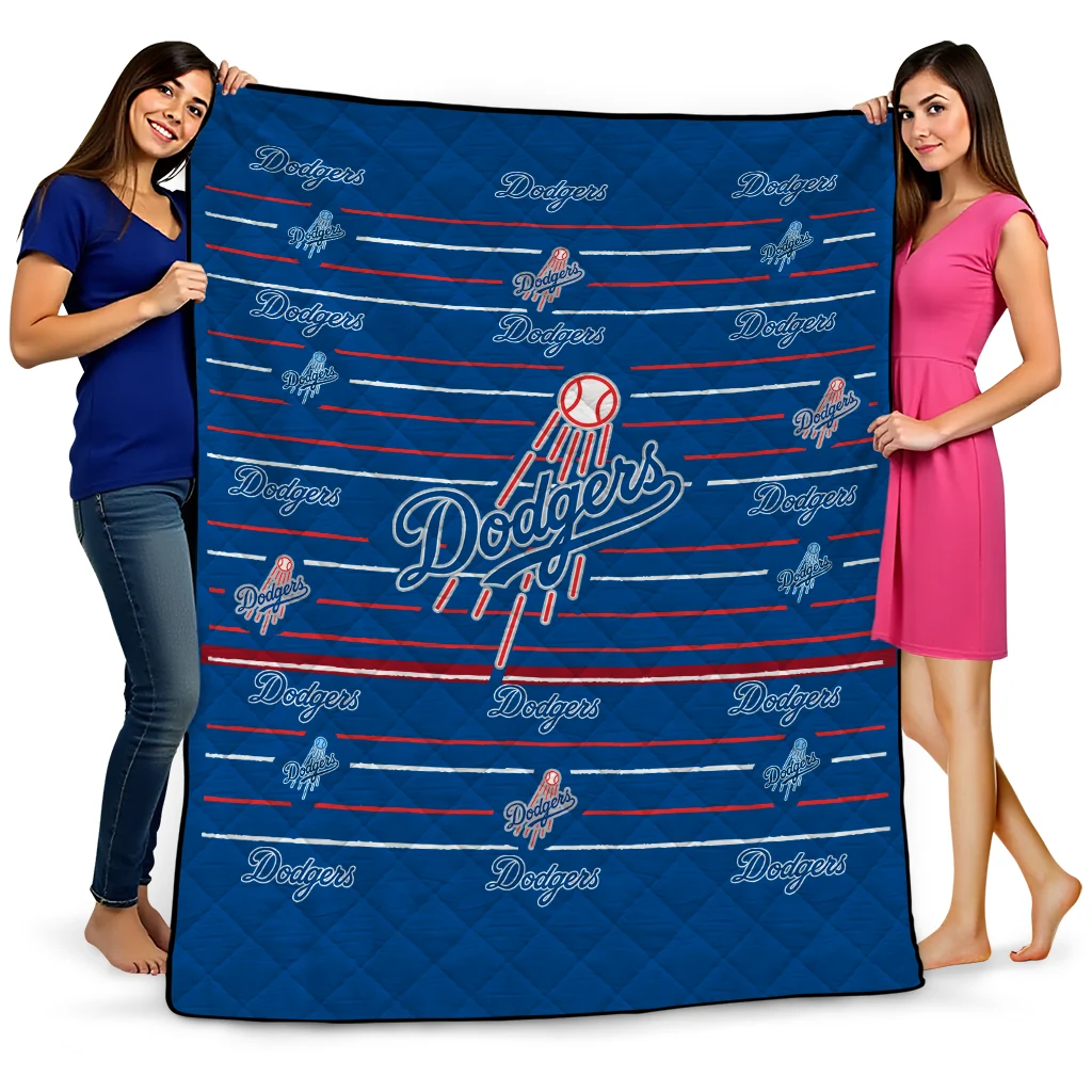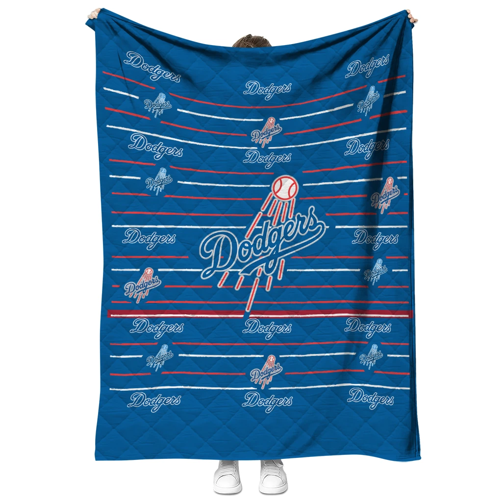 Los Angeles Dodgers Handdrawn Stripes Blue Quilt Blanket
