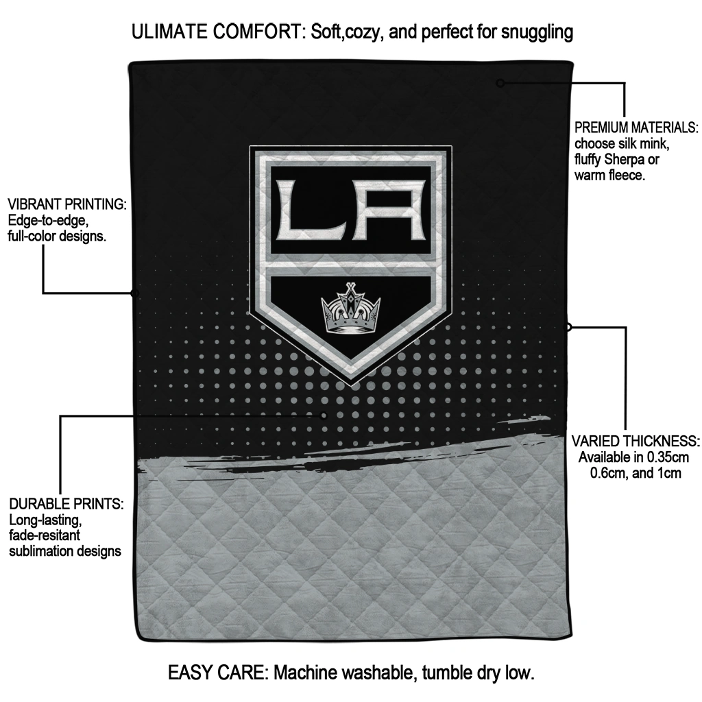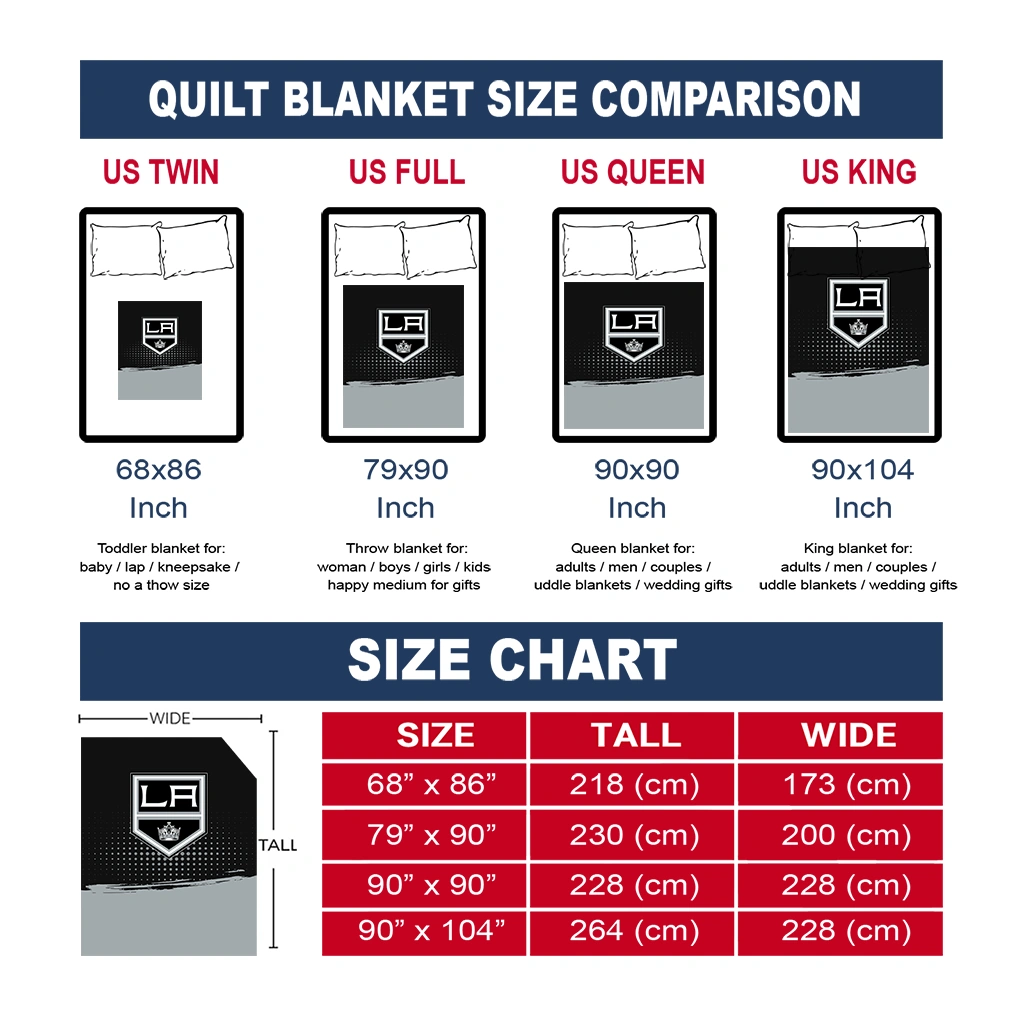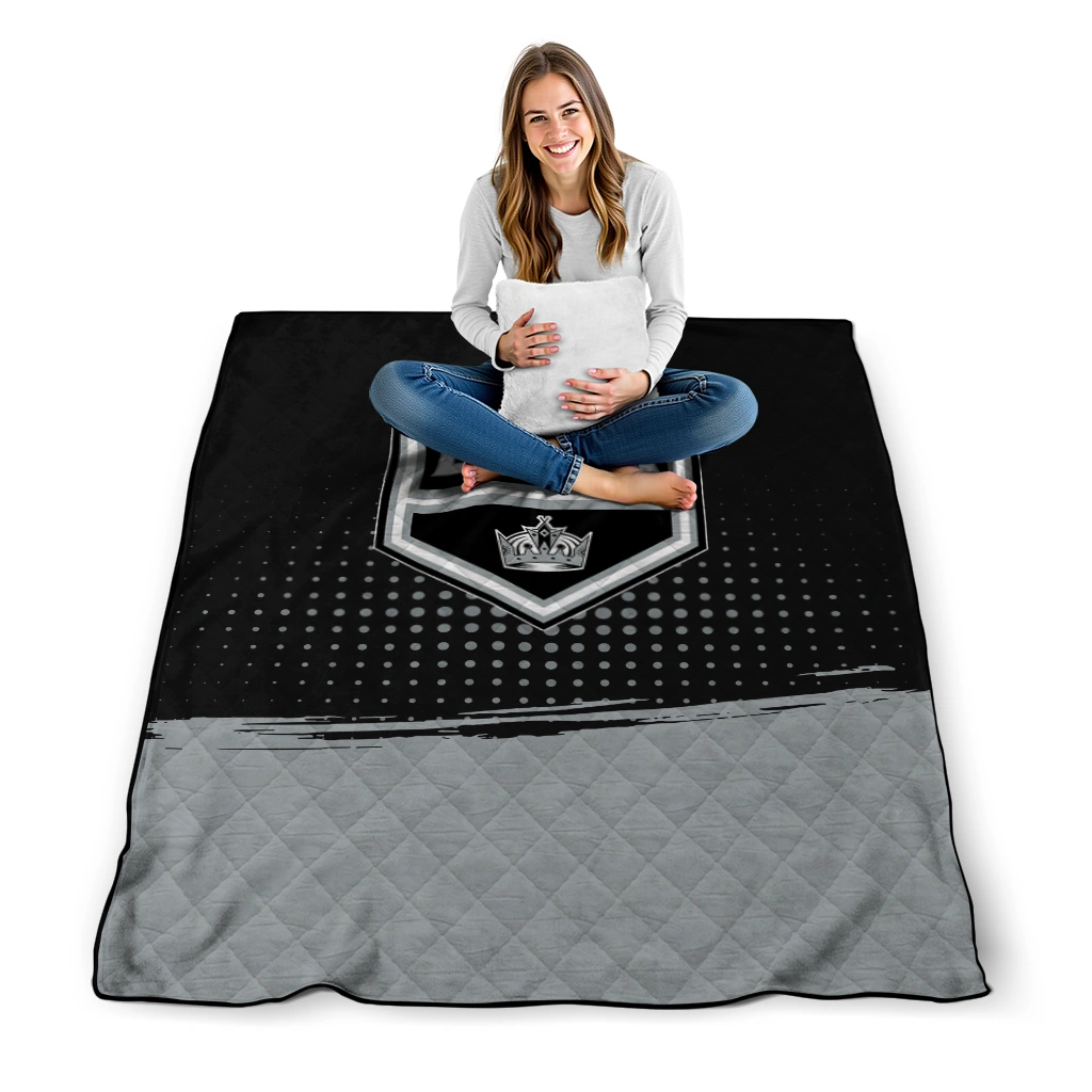 Wrap yourself in warmth and pride with the Los Angeles Kings Dot Illusion Black Quilt Blanket from the Los Angeles Kings Blankets collection at Yes That Blanket. Made from 100% premium quilting-weight polyester blended with a touch of microfiber, this quilt offers a smooth, soft finish you’ll love. Choose between two quilting styles—Stipple or Diagonal—and enjoy the comfort of a cotton-filled layer inside that adds extra coziness for every season. The border is available in classic black or white, giving your design a clean, timeless edge.