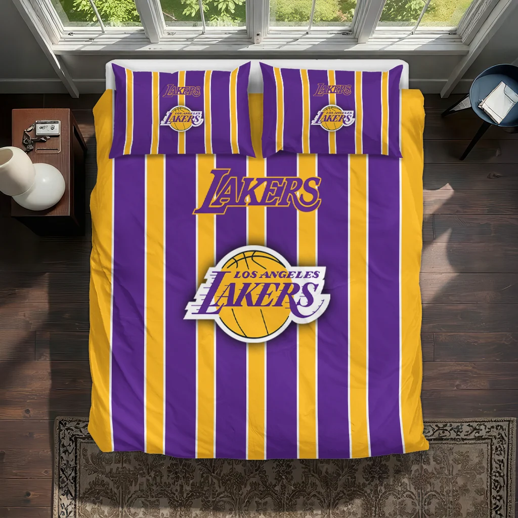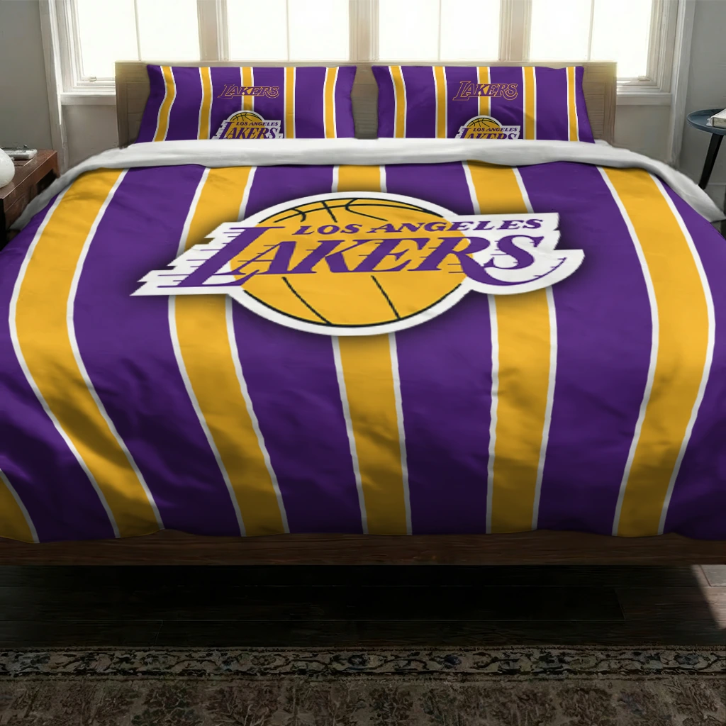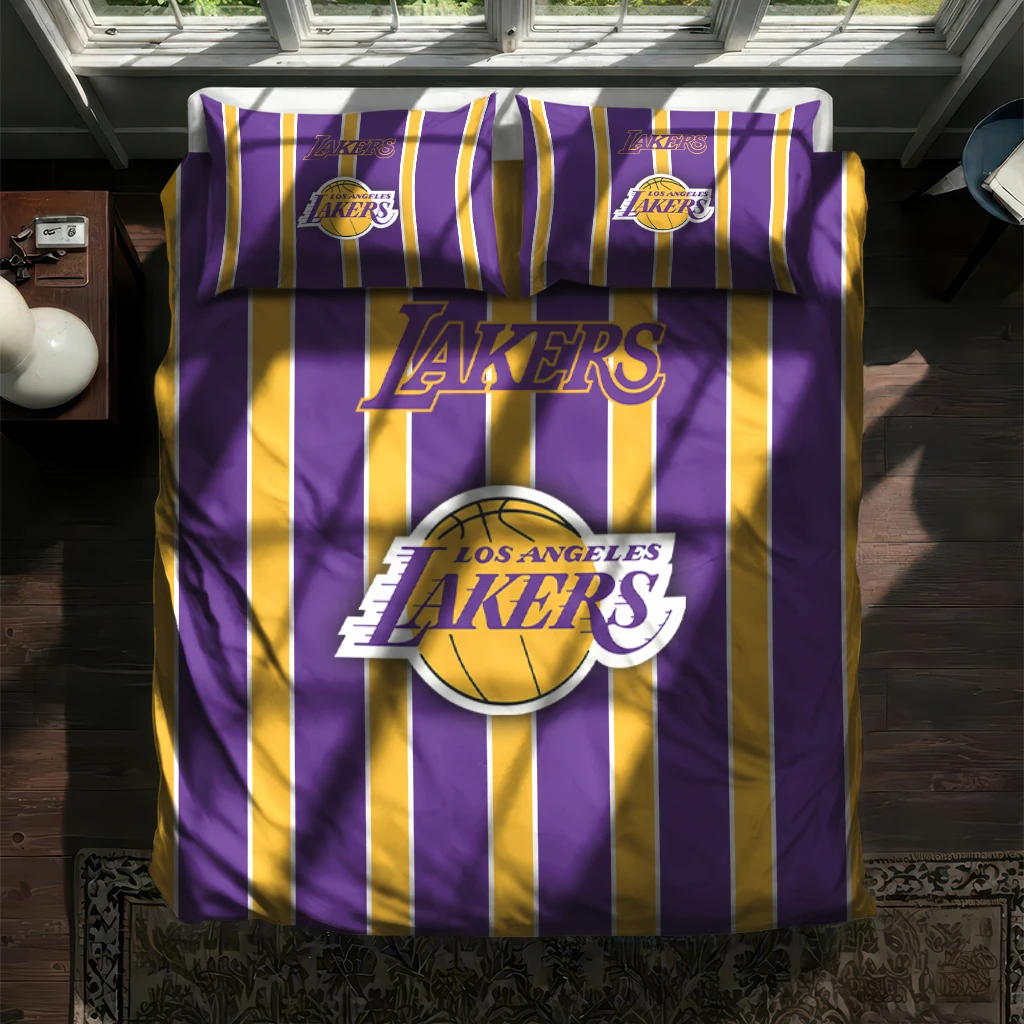 The Los Angeles Lakers Bedding Set – Stripe Style Purple Yellow makes your room feel complete, warm, and overflowing with team pride. Designed for true fans, this bedding set from the Los Angeles Lakers Bedding Sets collection at Yes That Blanket turns your sanctuary into a cozy retreat where sport style meets ultimate relaxation. Experience the perfect blend of comfort and passion every night with a finish so soft, you’ll never want to leave.