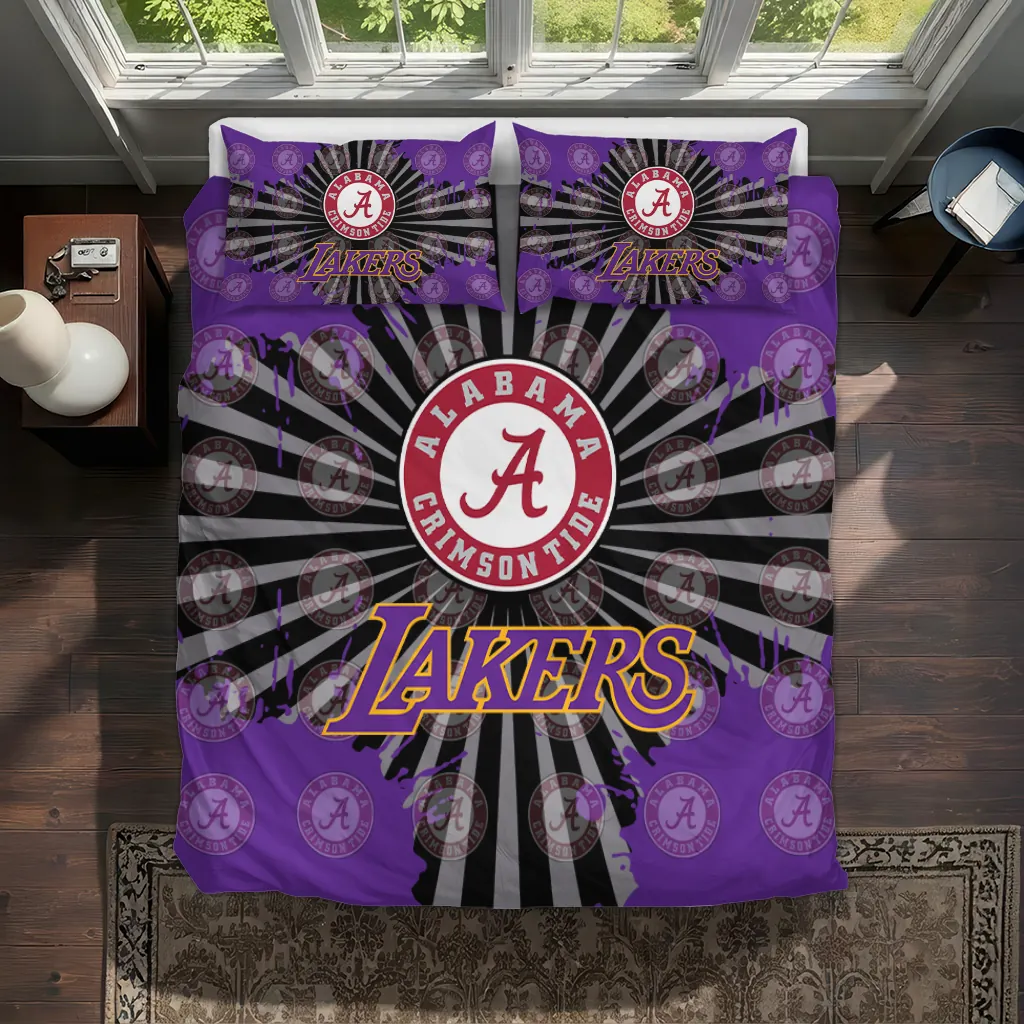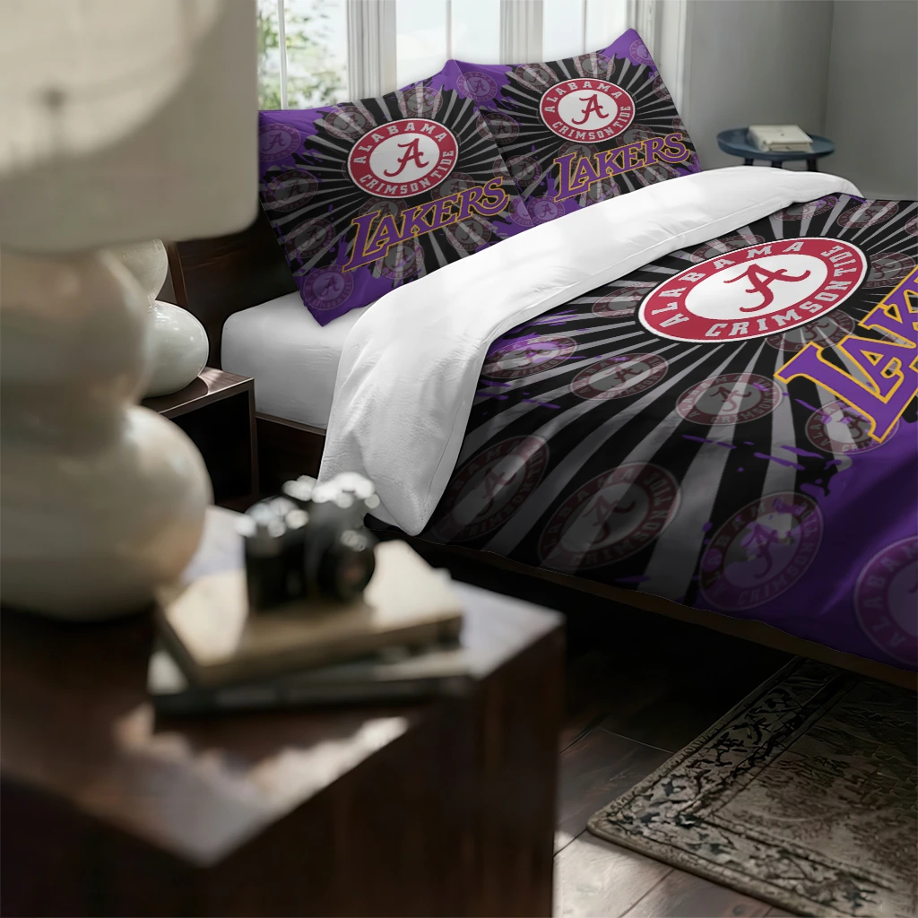 Los Angeles Lakers Bedding Set – Sunburst Splatter Purple Black