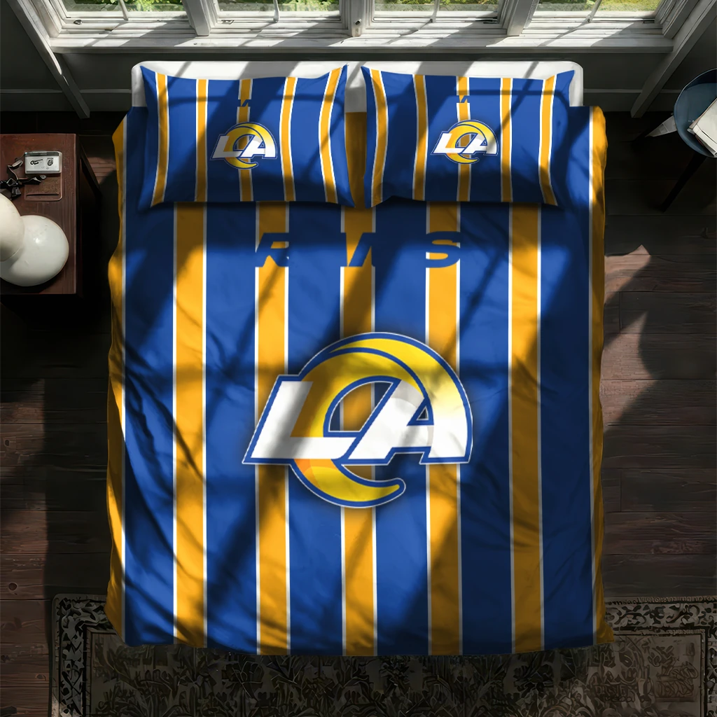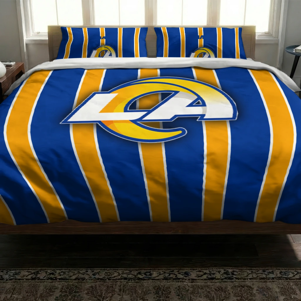 The Los Angeles Rams Bedding Set – Stripe Style Blue Yellow makes your room feel complete, warm, and overflowing with team pride. Designed for true fans, this bedding set from the Los Angeles Rams Bedding Sets collection at Yes That Blanket turns your sanctuary into a cozy retreat where sport style meets ultimate relaxation. Experience the perfect blend of comfort and passion every night with a finish so soft, you’ll never want to leave.