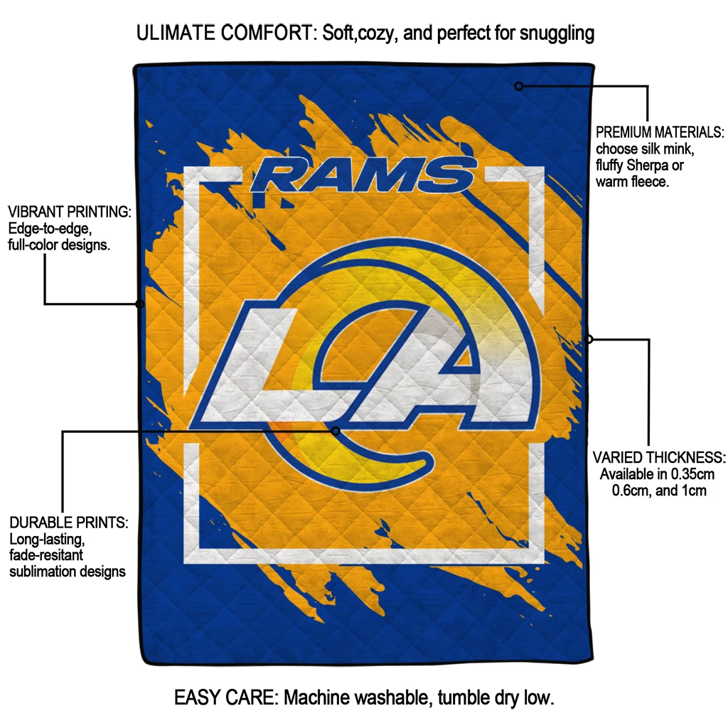 Wrap yourself in warmth and pride with the Los Angeles Rams Block Border Blue Quilt Blanket from the Los Angeles Rams Blankets collection at Yes That Blanket. Made from 100% premium quilting-weight polyester blended with a touch of microfiber, this quilt offers a smooth, soft finish you’ll love. Choose between two quilting styles—Stipple or Diagonal—and enjoy the comfort of a cotton-filled layer inside that adds extra coziness for every season. The border is available in classic black or white, giving your design a clean, timeless edge.