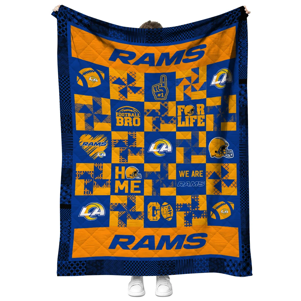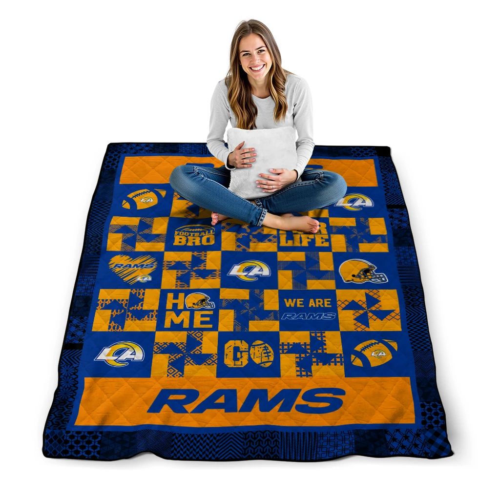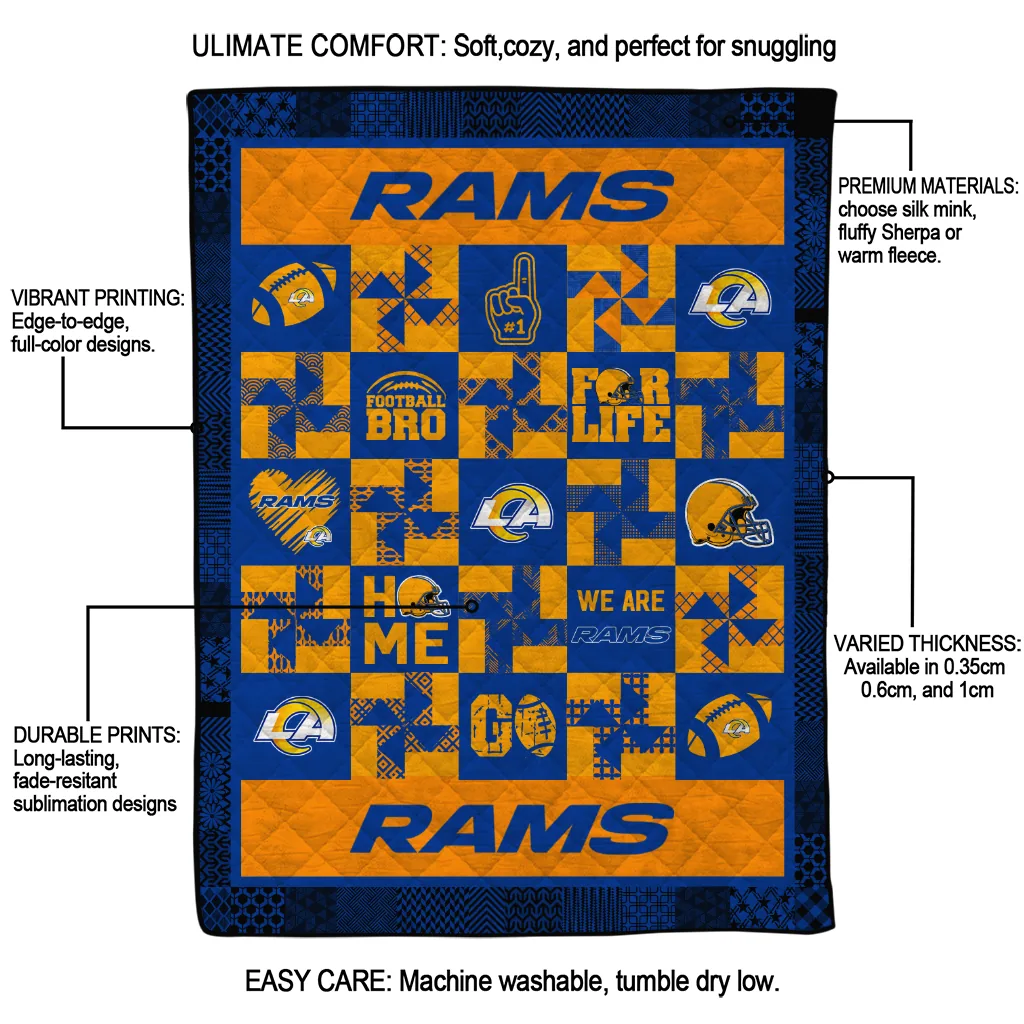 Wrap yourself in warmth and pride with the Los Angeles Rams Helmet Heart Blue Quilt Blanket from the Los Angeles Rams Blankets collection at Yes That Blanket. Made from 100% premium quilting-weight polyester blended with a touch of microfiber, this quilt offers a smooth, soft finish you’ll love. Choose between two quilting styles—Stipple or Diagonal—and enjoy the comfort of a cotton-filled layer inside that adds extra coziness for every season. The border is available in classic black or white, giving your design a clean, timeless edge.