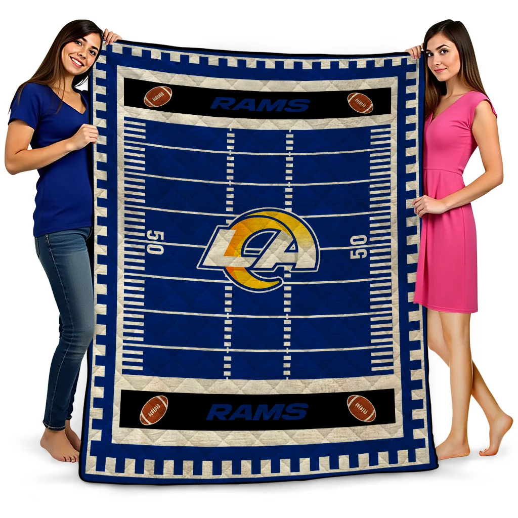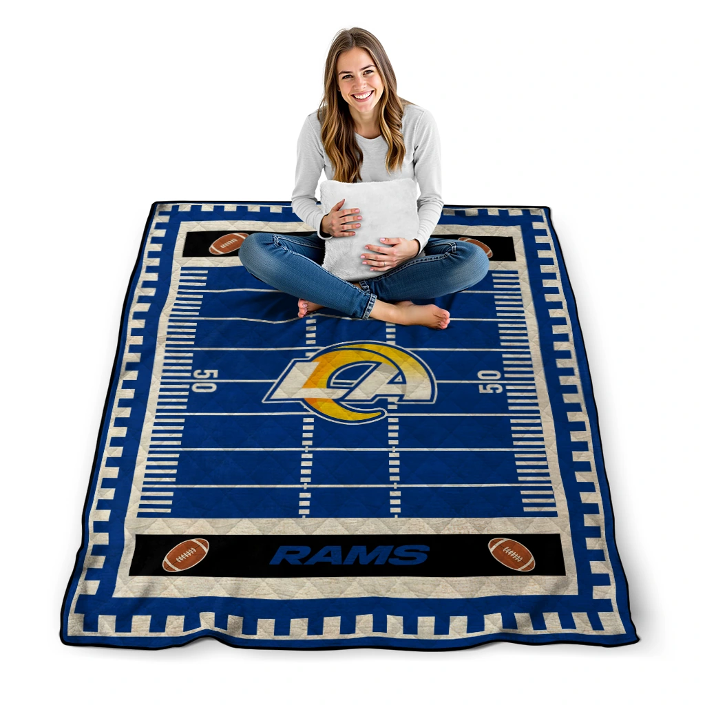 Wrap yourself in warmth and pride with the Los Angeles Rams Mickey Player Blue Quilt Blanket from the Los Angeles Rams Blankets collection at Yes That Blanket. Made from 100% premium quilting-weight polyester blended with a touch of microfiber, this quilt offers a smooth, soft finish you’ll love. Choose between two quilting styles—Stipple or Diagonal—and enjoy the comfort of a cotton-filled layer inside that adds extra coziness for every season. The border is available in classic black or white, giving your design a clean, timeless edge.
