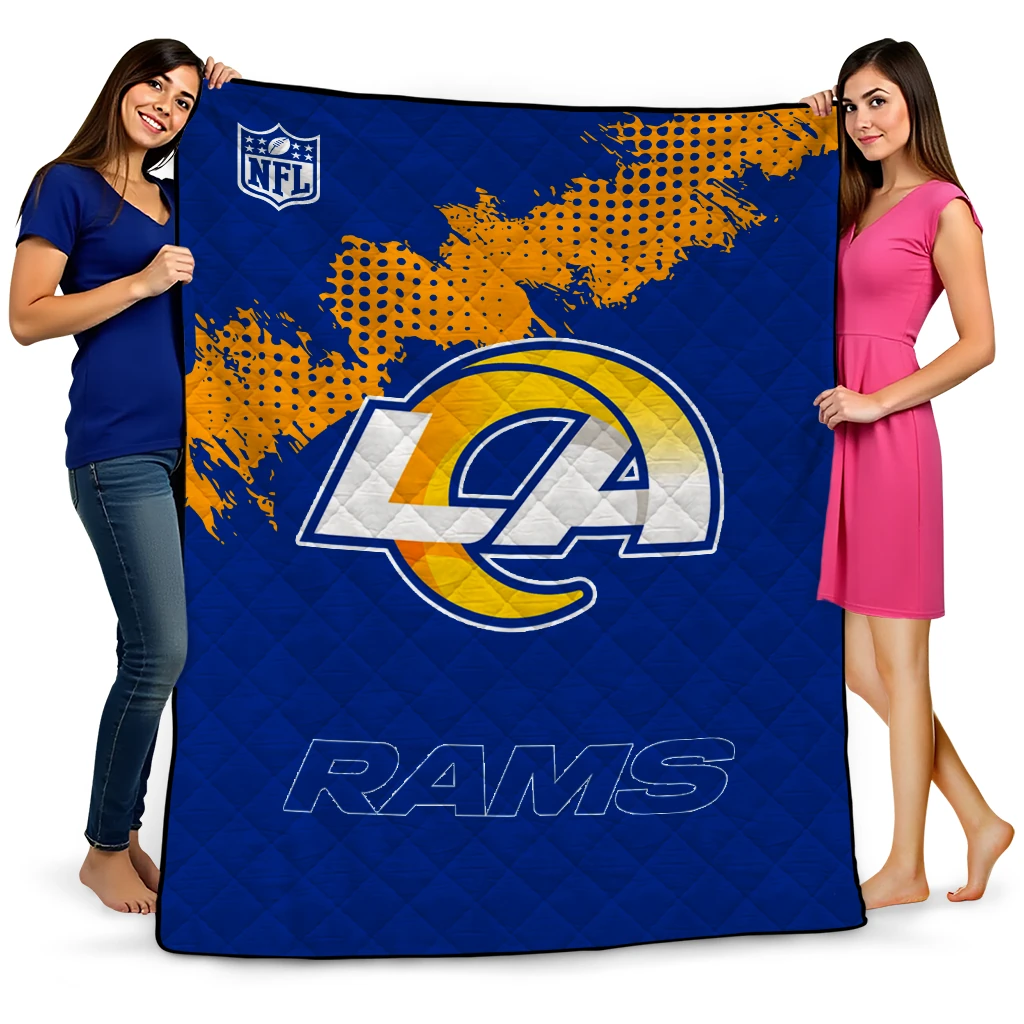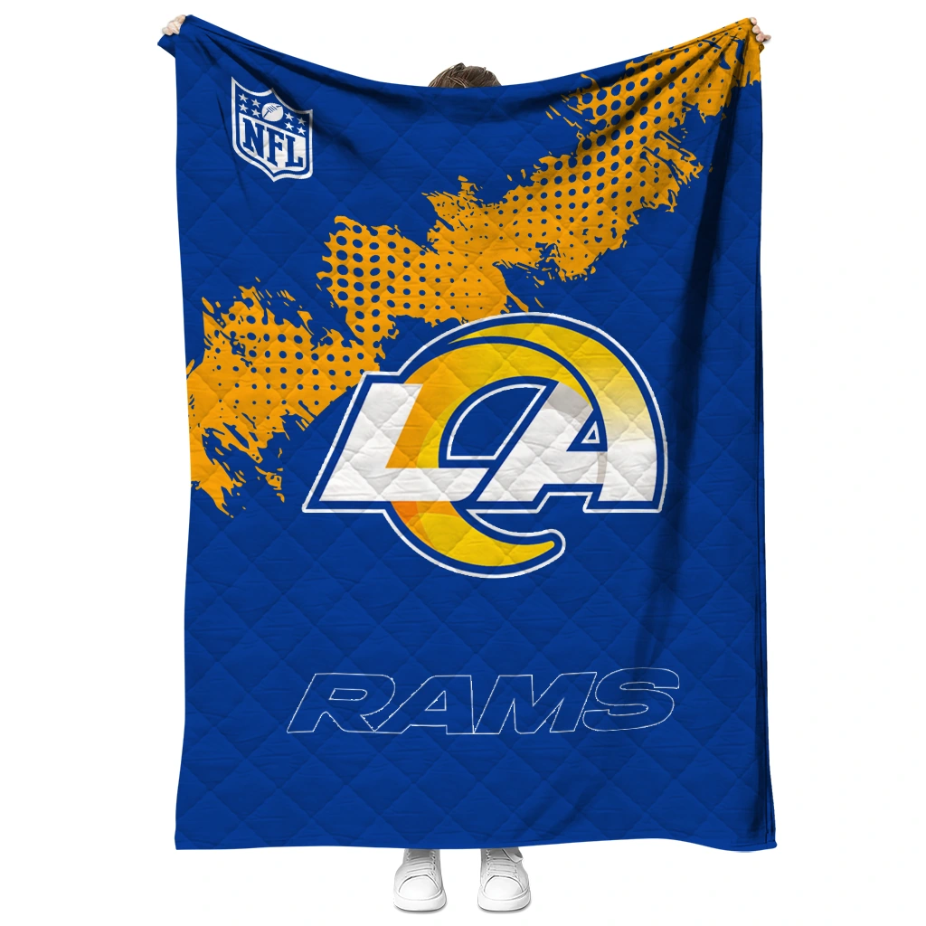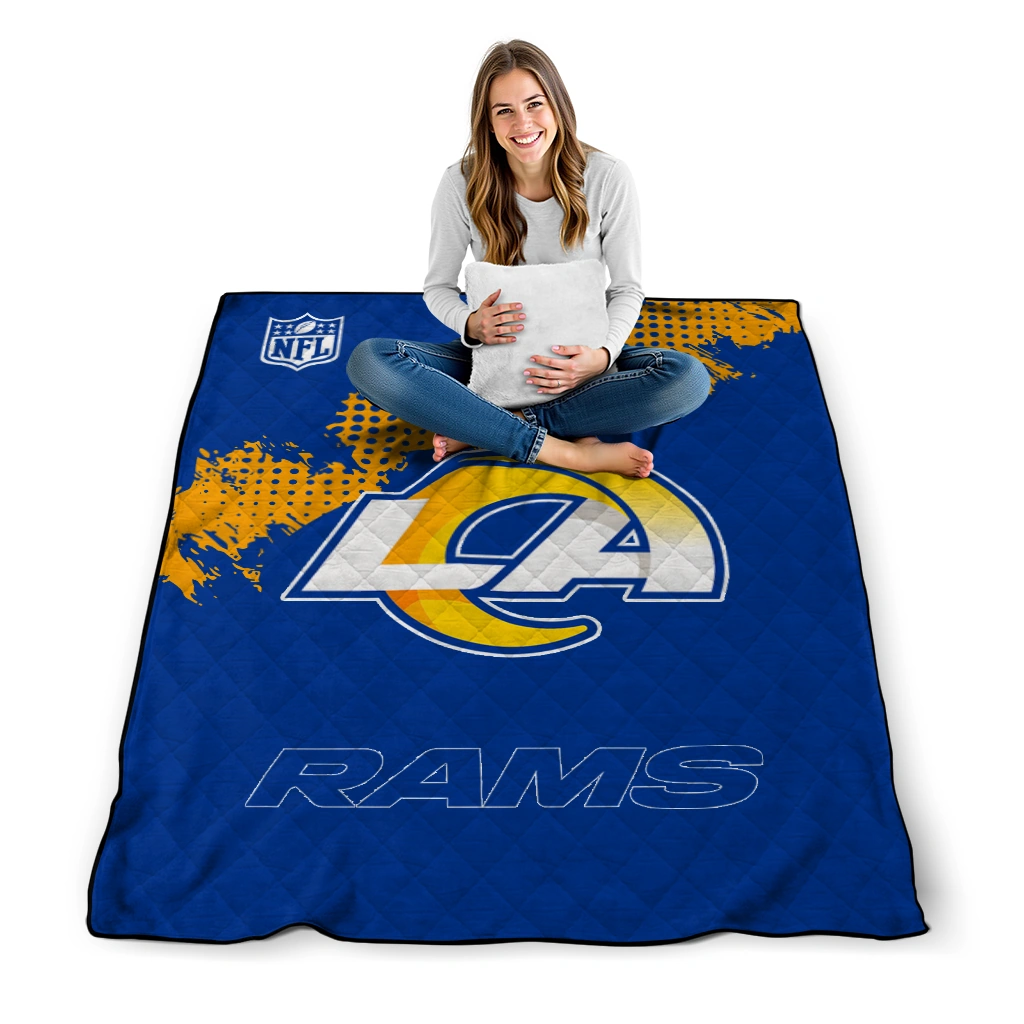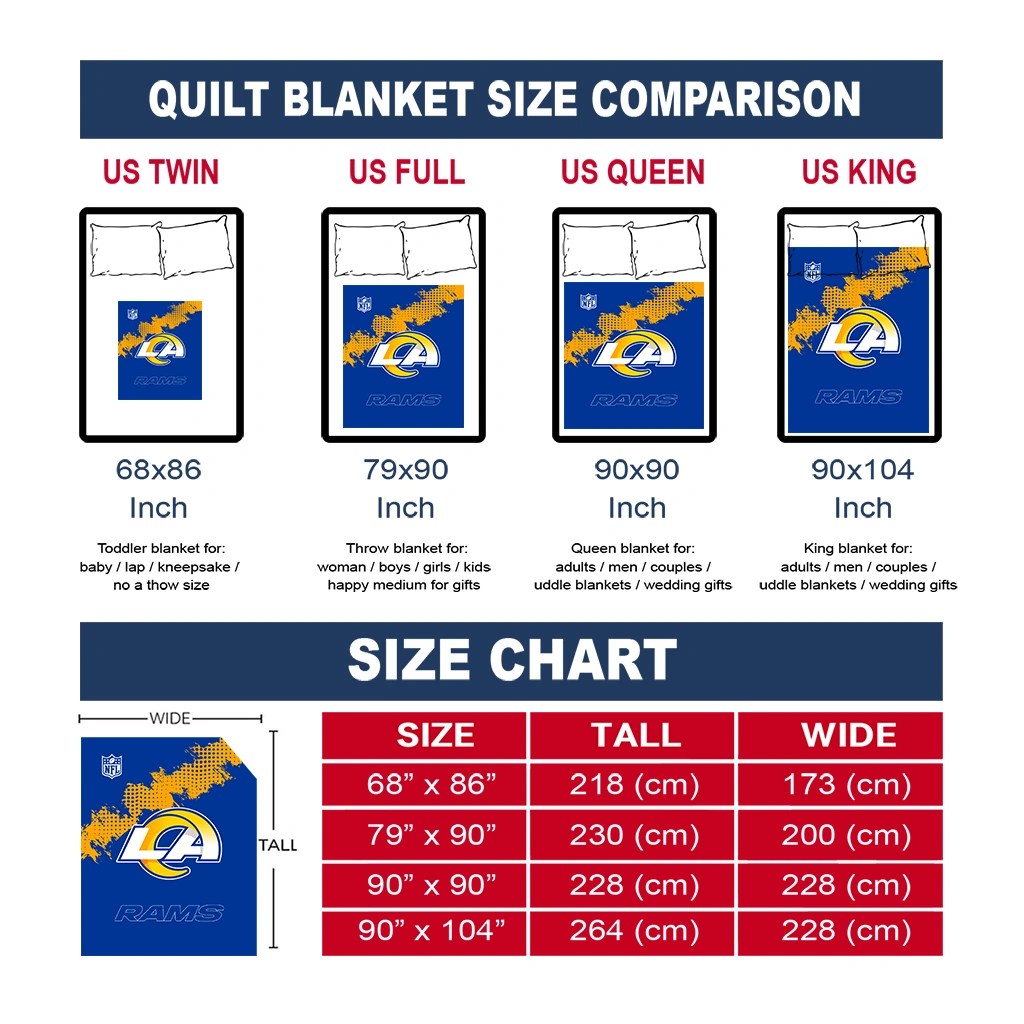 Wrap yourself in warmth and pride with the Los Angeles Rams Shield Badge Blue Quilt Blanket from the Los Angeles Rams Blankets collection at Yes That Blanket. Made from 100% premium quilting-weight polyester blended with a touch of microfiber, this quilt offers a smooth, soft finish you’ll love. Choose between two quilting styles—Stipple or Diagonal—and enjoy the comfort of a cotton-filled layer inside that adds extra coziness for every season. The border is available in classic black or white, giving your design a clean, timeless edge.