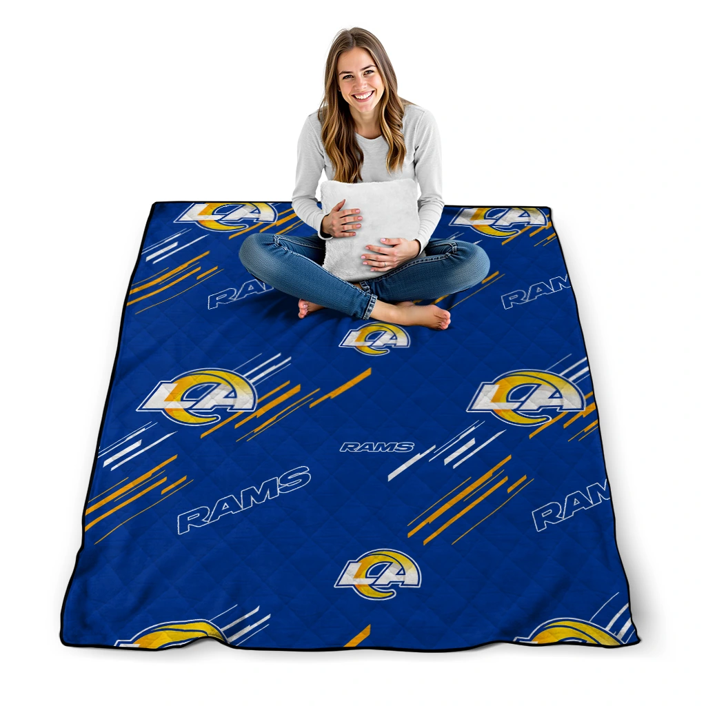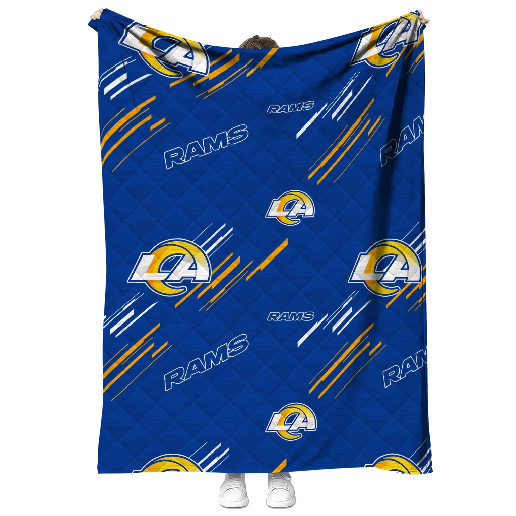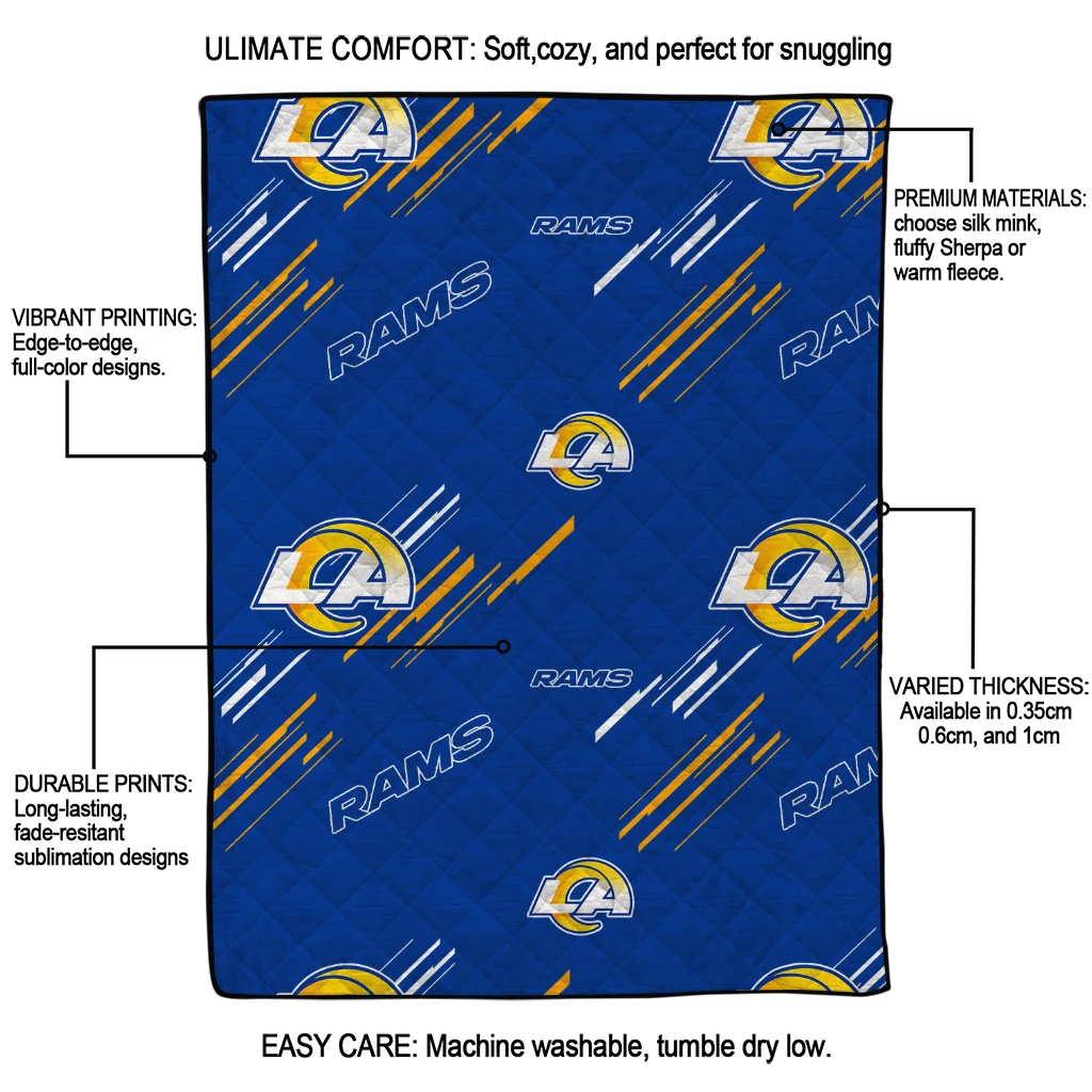 Los Angeles Rams Sketch Lines Blue Quilt Blanket