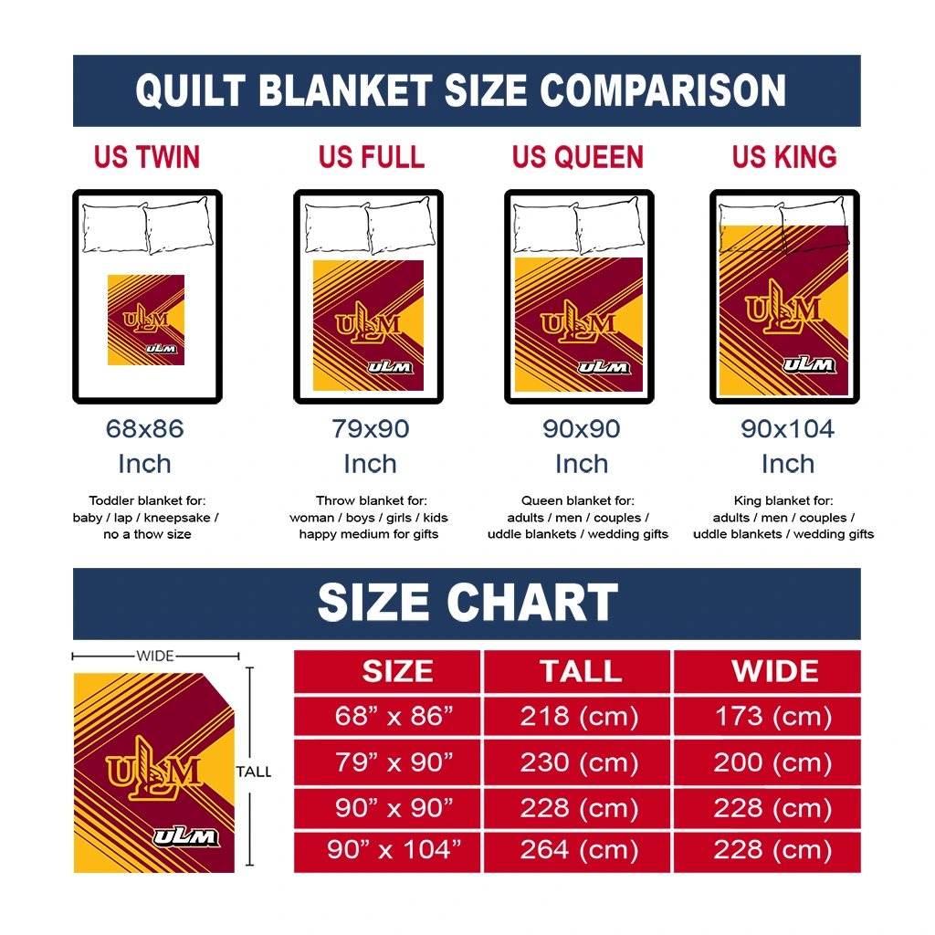 Wrap yourself in warmth and pride with the Louisiana-Monroe Warhawks Arrow Layers Red Quilt Blanket from the Louisiana-Monroe Warhawks Blankets collection at Yes That Blanket. Made from 100% premium quilting-weight polyester blended with a touch of microfiber, this quilt offers a smooth, soft finish you’ll love. Choose between two quilting styles—Stipple or Diagonal—and enjoy the comfort of a cotton-filled layer inside that adds extra coziness for every season. The border is available in classic black or white, giving your design a clean, timeless edge.
