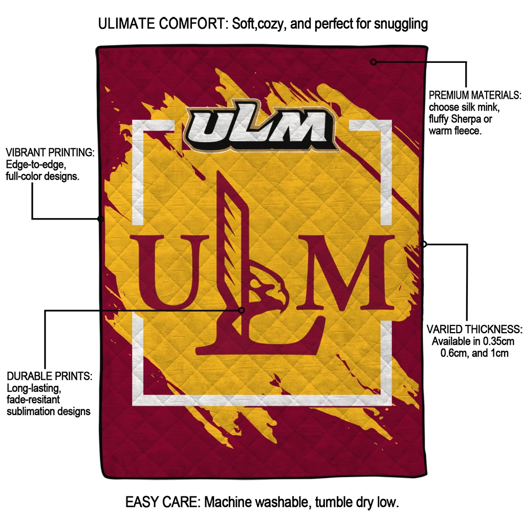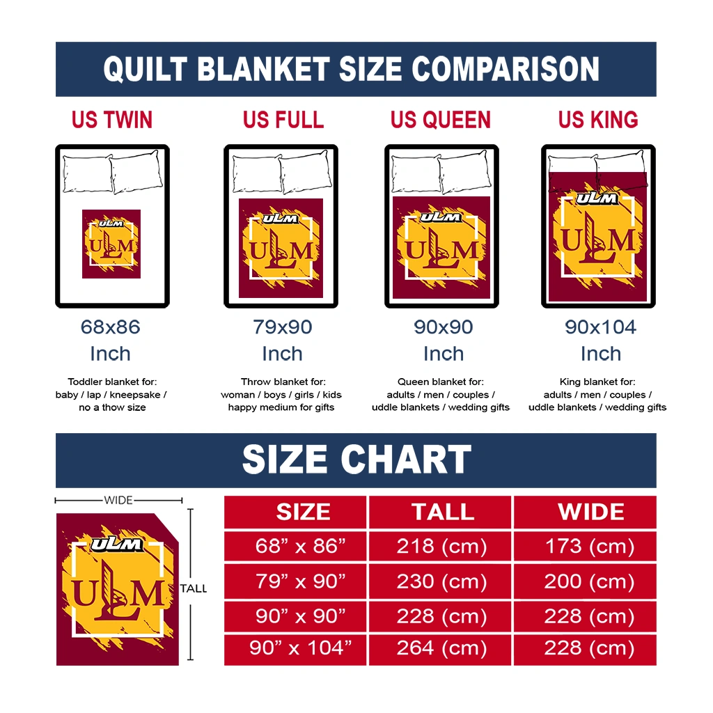 Wrap yourself in warmth and pride with the Louisiana-Monroe Warhawks Block Border Red Quilt Blanket from the Louisiana-Monroe Warhawks Blankets collection at Yes That Blanket. Made from 100% premium quilting-weight polyester blended with a touch of microfiber, this quilt offers a smooth, soft finish you’ll love. Choose between two quilting styles—Stipple or Diagonal—and enjoy the comfort of a cotton-filled layer inside that adds extra coziness for every season. The border is available in classic black or white, giving your design a clean, timeless edge.