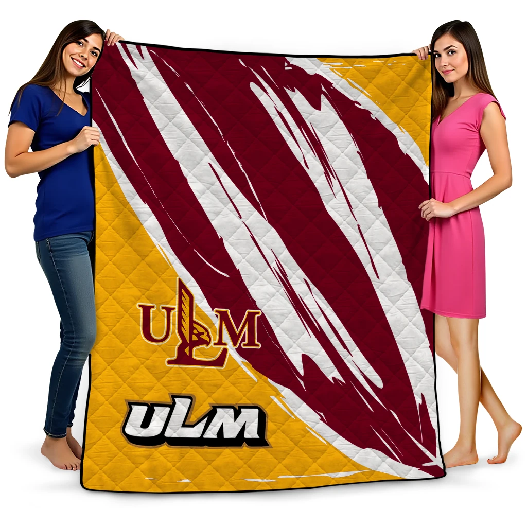 Wrap yourself in warmth and pride with the Louisiana-Monroe Warhawks Stroke Art Red White Quilt Blanket from the Louisiana-Monroe Warhawks Blankets collection at Yes That Blanket. Made from 100% premium quilting-weight polyester blended with a touch of microfiber, this quilt offers a smooth, soft finish you’ll love. Choose between two quilting styles—Stipple or Diagonal—and enjoy the comfort of a cotton-filled layer inside that adds extra coziness for every season. The border is available in classic black or white, giving your design a clean, timeless edge.