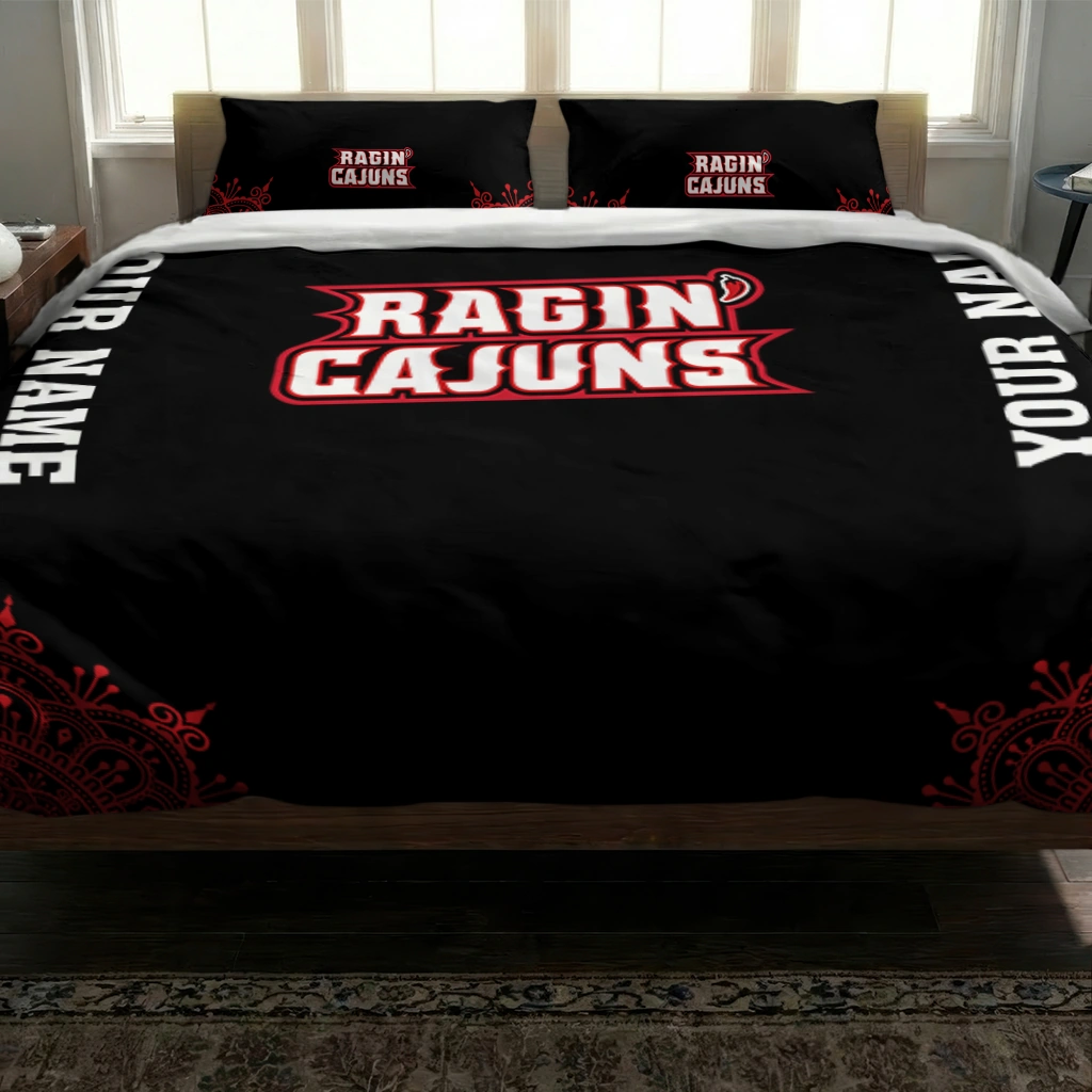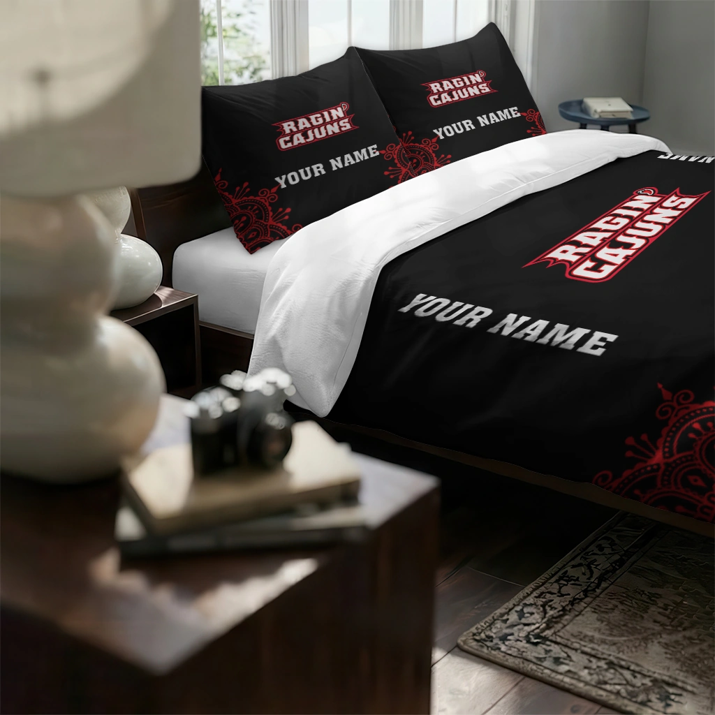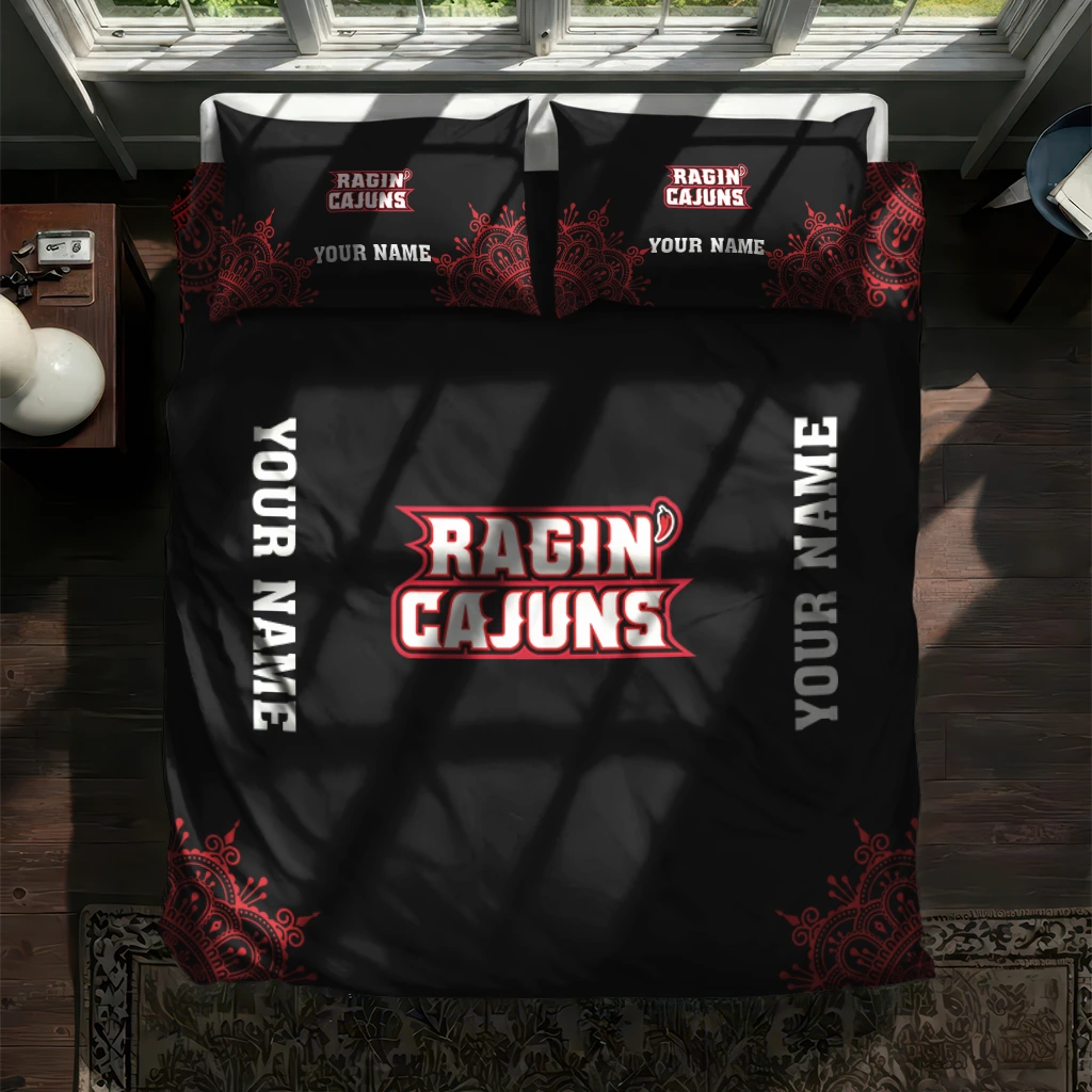 Louisiana Ragin’ Cajuns Bedding Set – Personalized Mandala Lacework Black Red