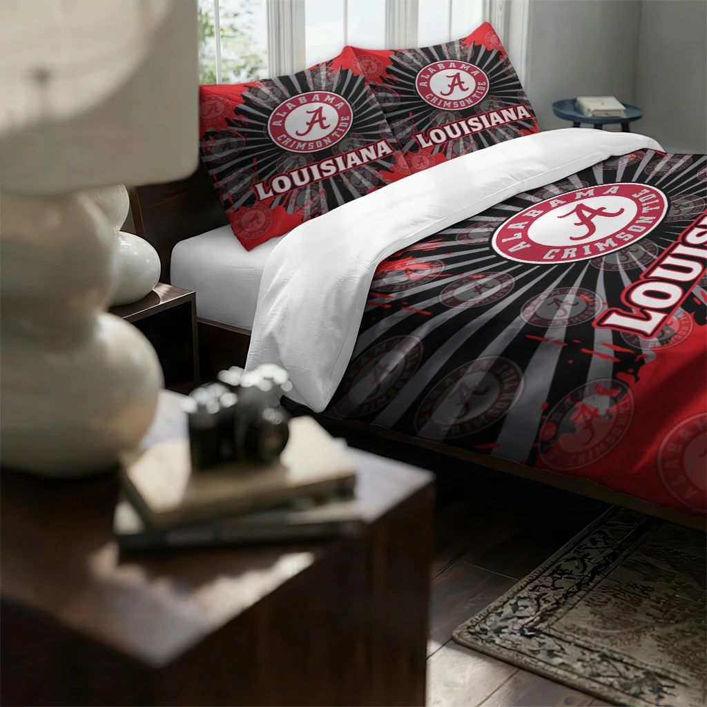 Louisiana Ragin’ Cajuns Bedding Set – Sunburst Splatter Red Black